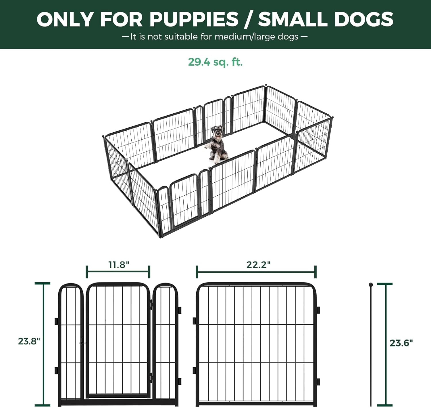 FXW Homeplus Unleashed Indoor Dog Playpen - Stress-Free and Safe Play, Heavy Duty 24 Inch 12 Wire Panels Dog Pen for Puppy and Small Dogs, Black│Patented