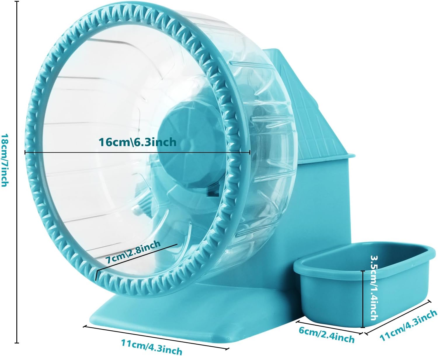 - Size: Wheel diameter 6.3 inches, runway width 2.8 inches with a sturdy base that is suitable for hamsters, gerbils, mice, hedgehogs, mice, and other small pets, making it the perfect gift for you. (Note: The multifunctional Running Spinner Wheel has an overall height of 7 inches and an overall width of 6.7 inches. Please pay attention to the size of cage when purchasing.)