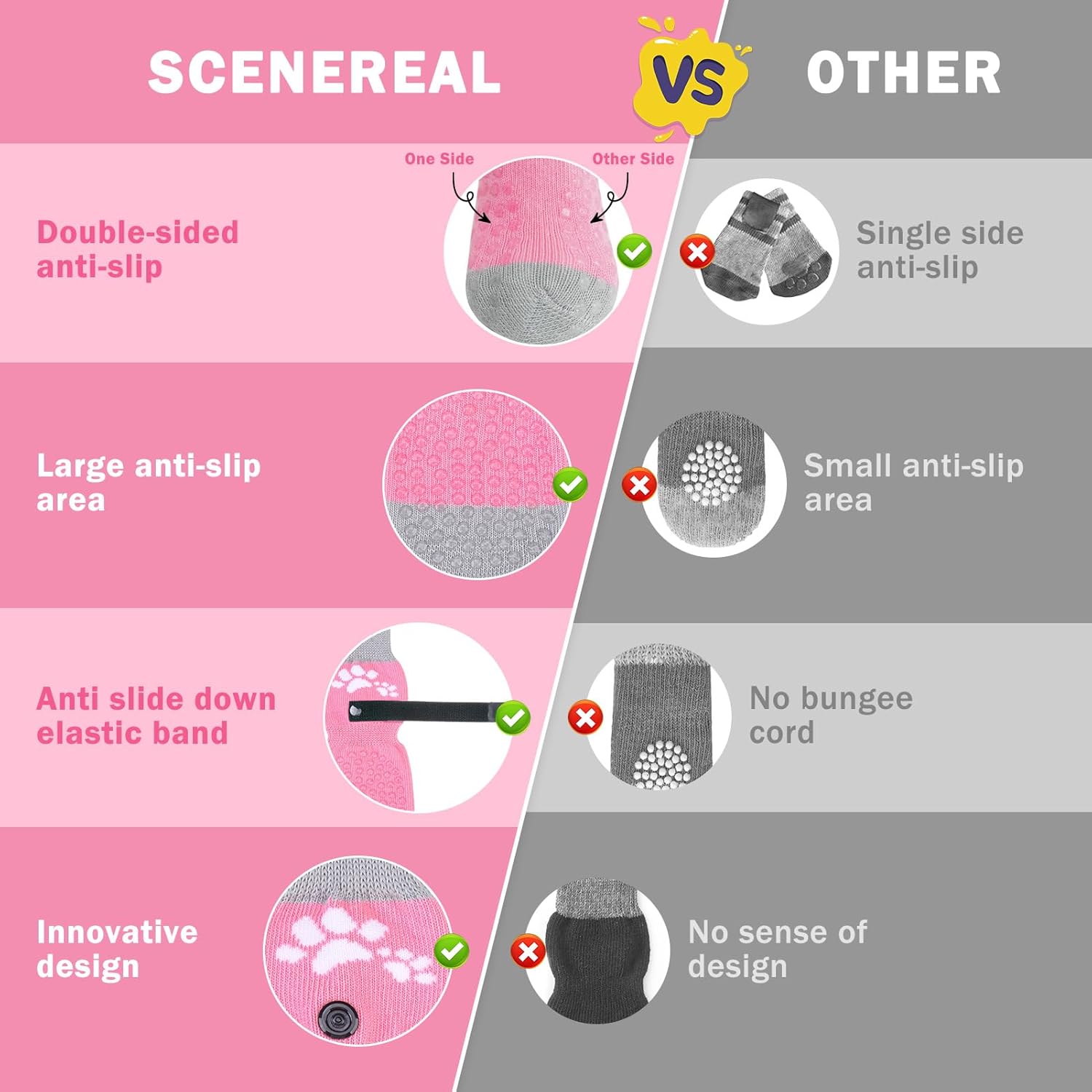 SCENEREAL Anti Slip Dog Sock to Prevent Licking Paws for Hardwood Floors, Boots & Paw Protector Shoes for Hot/Cold Pavement with Grippers, Double Sides Grips for Small Medium Large Senior Dogs, XS