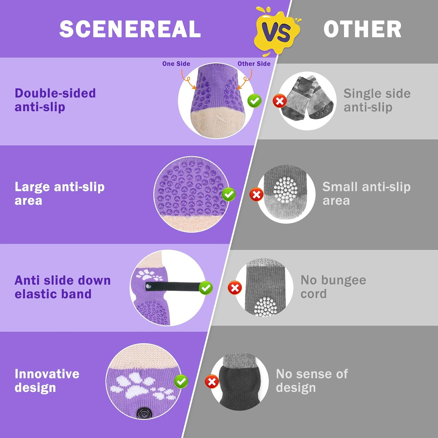 • MULTIFUNCTIONAL MULTI-SITUATION APPLICATION: This dog socks for hardwood floors can provide protection for your dog's paws from hot pavement, heat and other potential hazards in the summer. Wearing our socks also prevents dogs from licking and irritating wounds, further aiding in the healing of foot wounds.