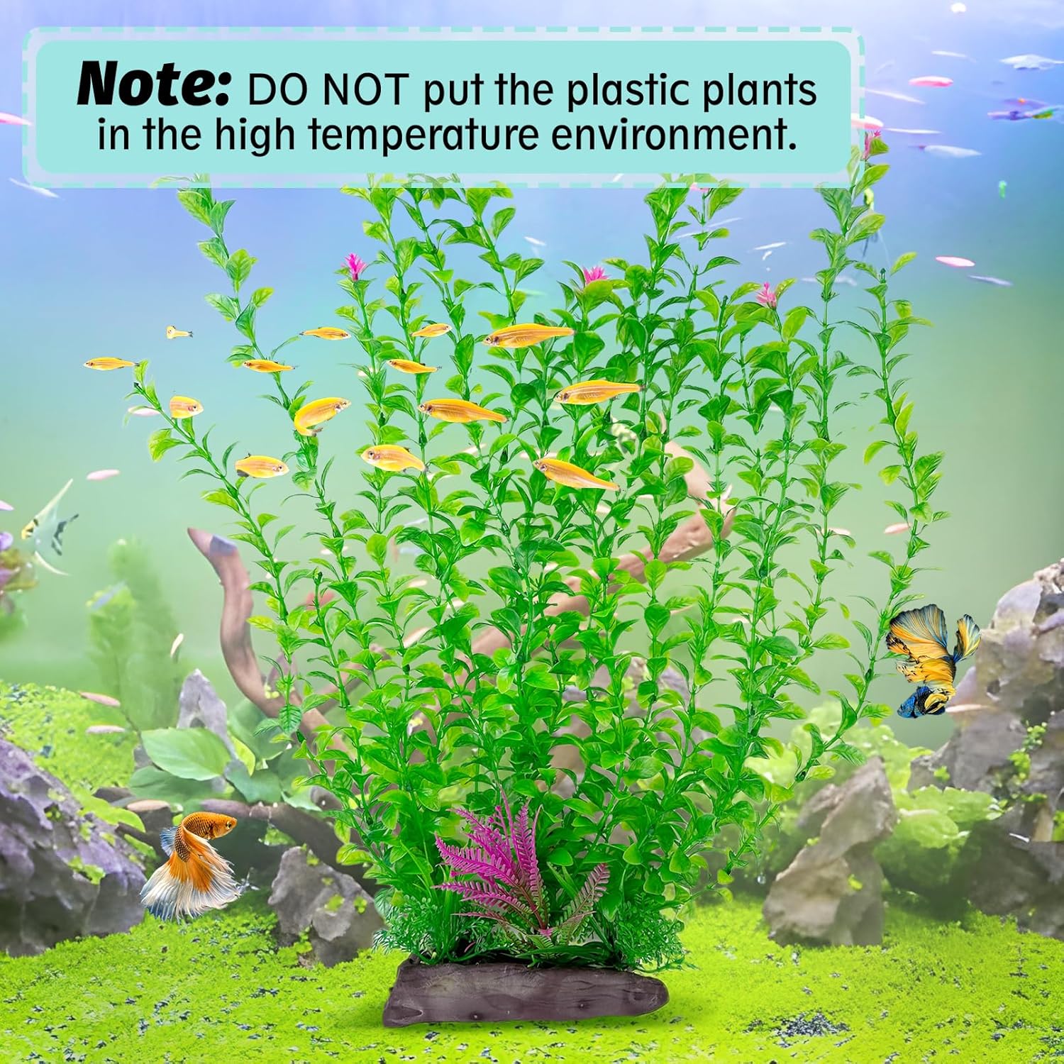 - ARTIFICIAL AQUARIUM PLANTS ADD LIFE TO YOUR AQUARIUM : By combining different aquarium equipment and decorations, you can be as creative as you want and create a unique aquarium landscape that fish tank plant plastic adds a touch of joy and vitality to your fish tank. The aquarium decor plastic plants fits most aquariums, such as 10 gallon, 20 gallon, 30 gallon or larger aquariums. NOTE: Tall artificial fish tank plants may be crushed and deformed during packaging, place in warm water at 104 - 140 degrees Fahrenheit to return to its original shape