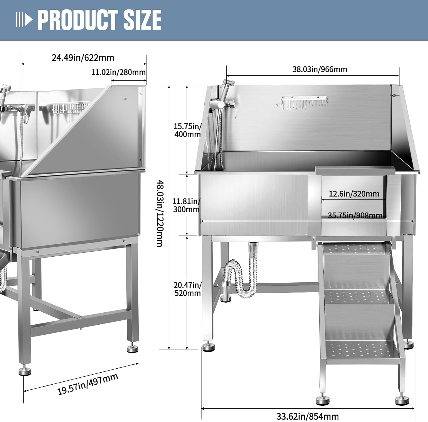 - š¶Dog Washing Station: Constructed from premium 304 stainless steel, this bathing station embodies durability and corrosion resistance. Its sleek design ensures effortless cleaning, offering not only a pet bathing haven but also a functional daily sink