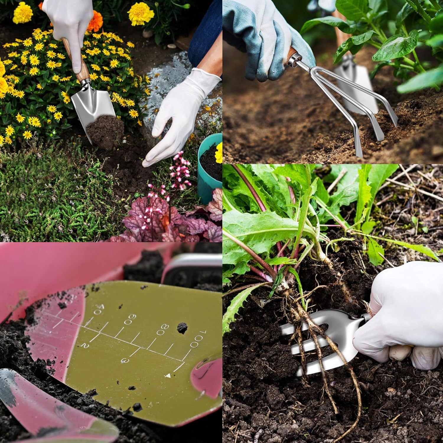 - Durable & Rust-Proof Stainless Steel Gardening Tool Set: Polished blades resist corrosion, lightweight hand tools reduce fatigue during weeding/transplanting, with rounded edges for safe use in gardens/balconies - built to last