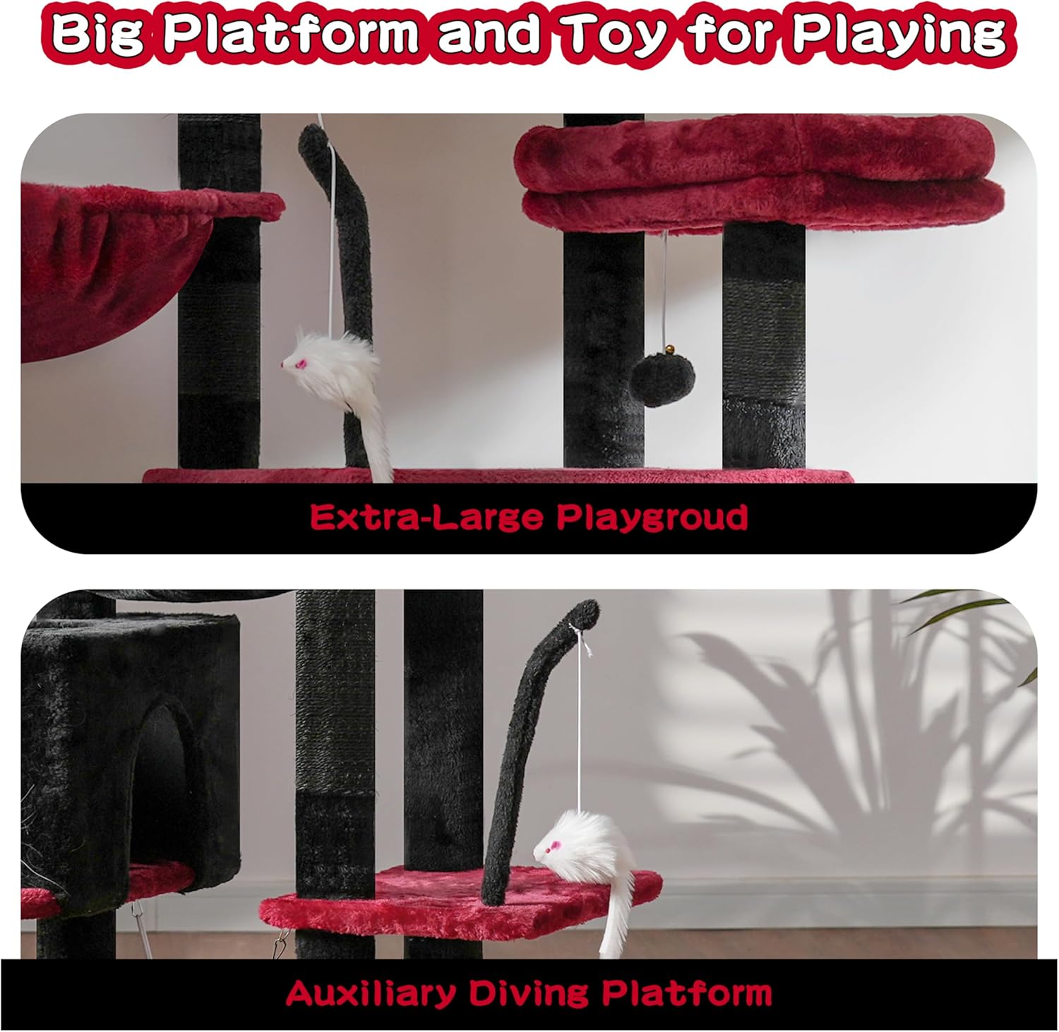 Gothic Cat Tree, Cat Tower for Large Cats with 2 Big Platforms, 2 Baskets, condo and Toys, 63" Cat Scratching Posts for Indoor Cats, Black and red GCT020BR