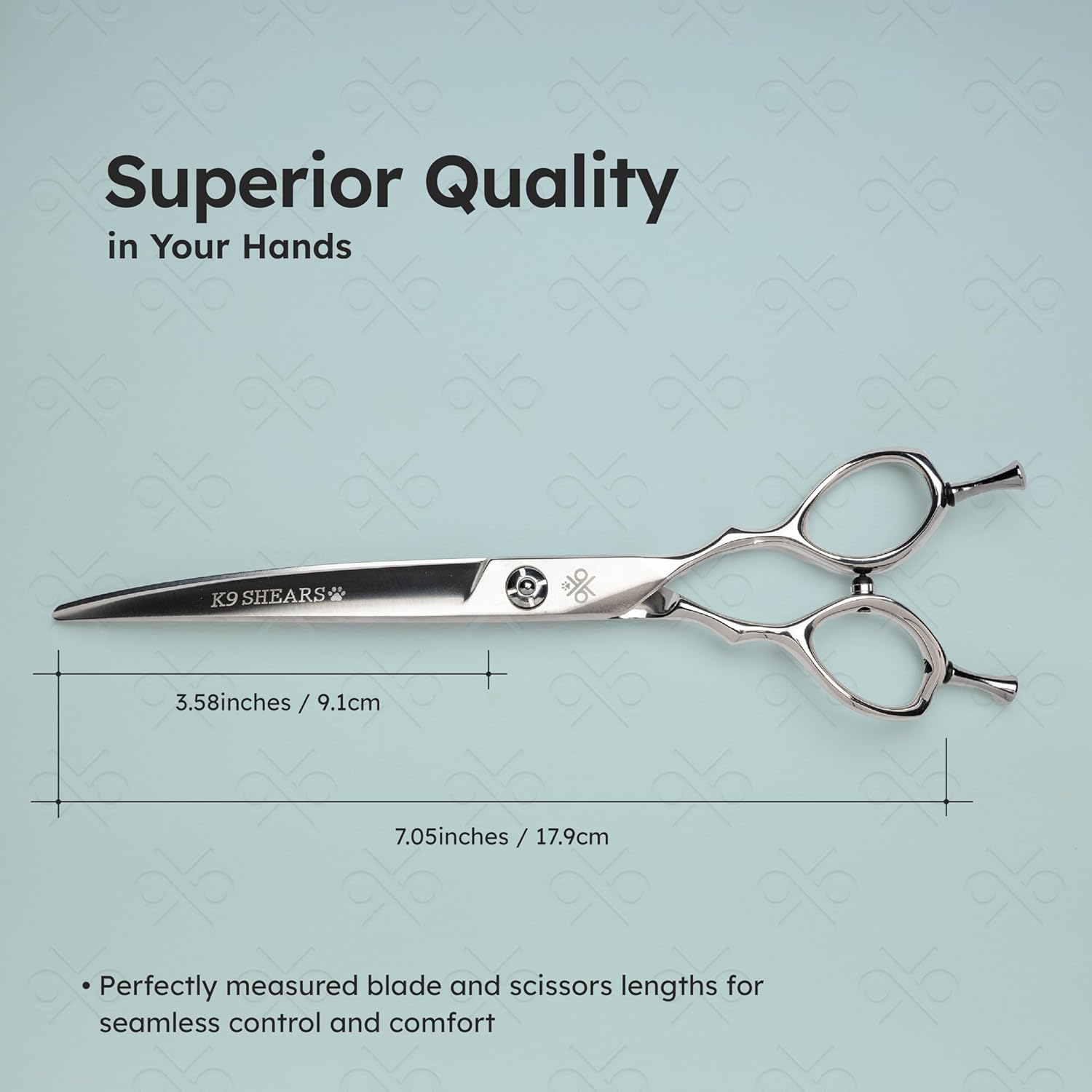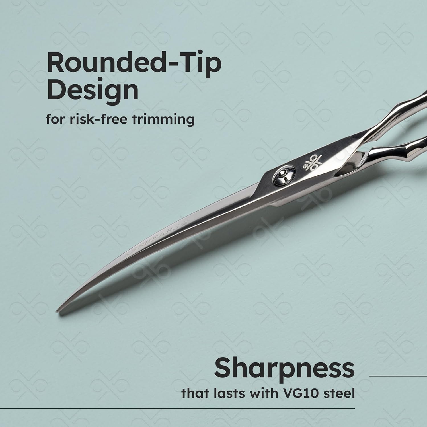7” Curved Dog Grooming Scissors|VG10 Japanese Steel Professional Pet Grooming Shears for Cats & Dogs|Face, Paws, Ears & Tail Precision Trimming|Lightweight Ergonomic Handcrafted Design|K9 Shears