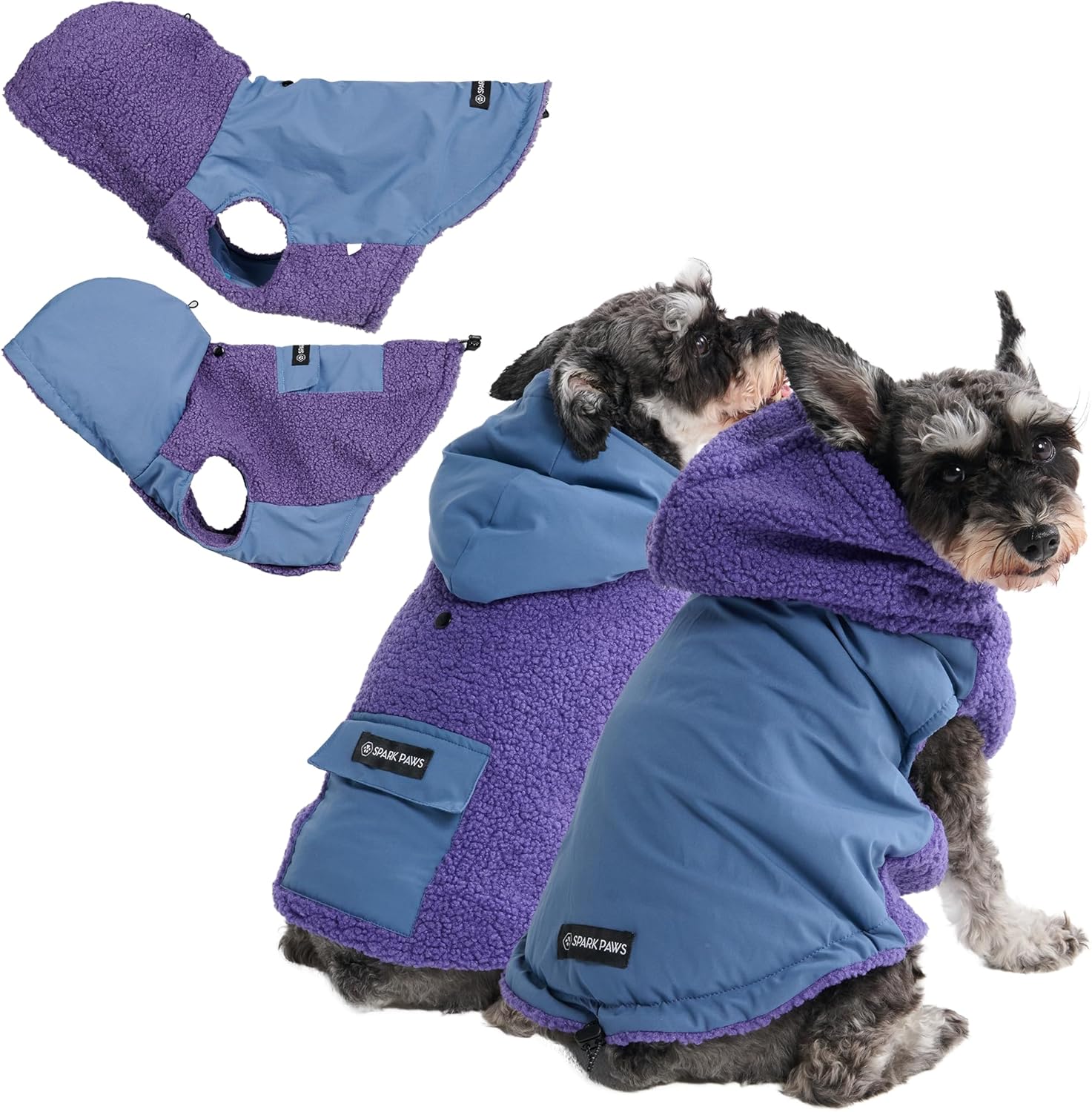 Spark Paws Reversible Dog Sweater, Sherpa Jacket Vest with Warm Fleece Lining, Warm Coat for Winter, Suitable for Small Medium, Large, XL XXL Dogs - Purple and Navy Blue - S