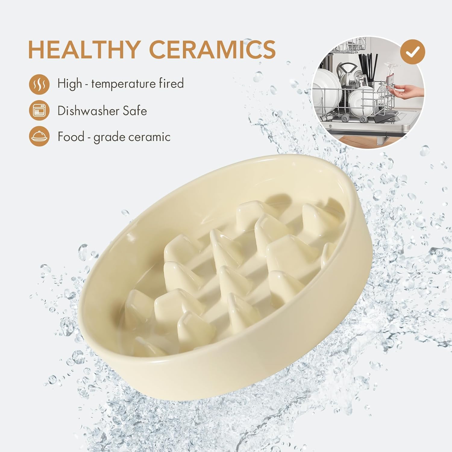 - Stable and Anti-Slip: Ceramic bowl is heavy and stable, and the anti-slip strip at the bowl's bottom can prevent bowl from sliding while your pet eating.