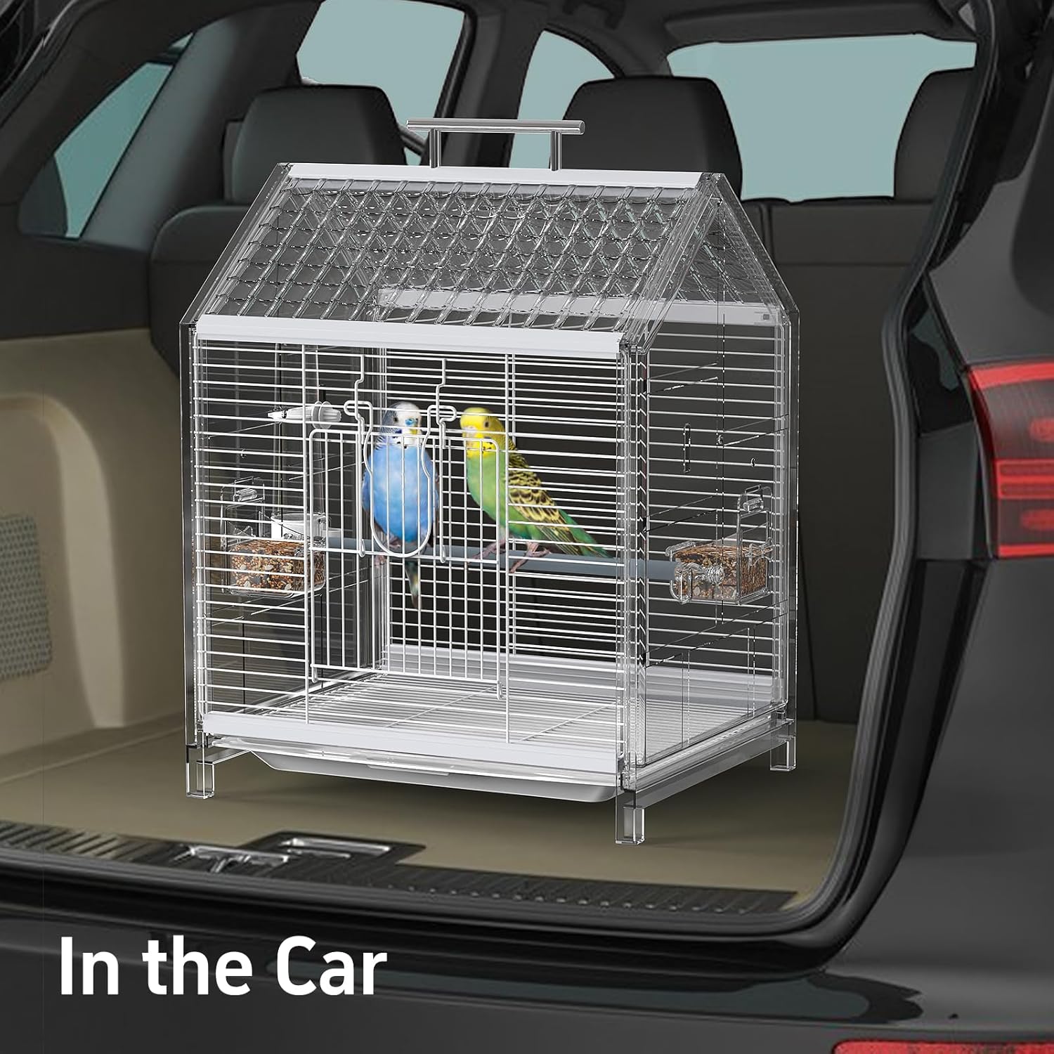 - 【Versatile for Multiple Settings】This bird cage is perfect for travel, accompanying you in the car (can be placed in the trunk or on the seat with a seatbelt secured), and is also suitable for home use, easy to move around the house. Whether it's for a short trip or everyday home use, it serves as an ideal habitat for your bird.
