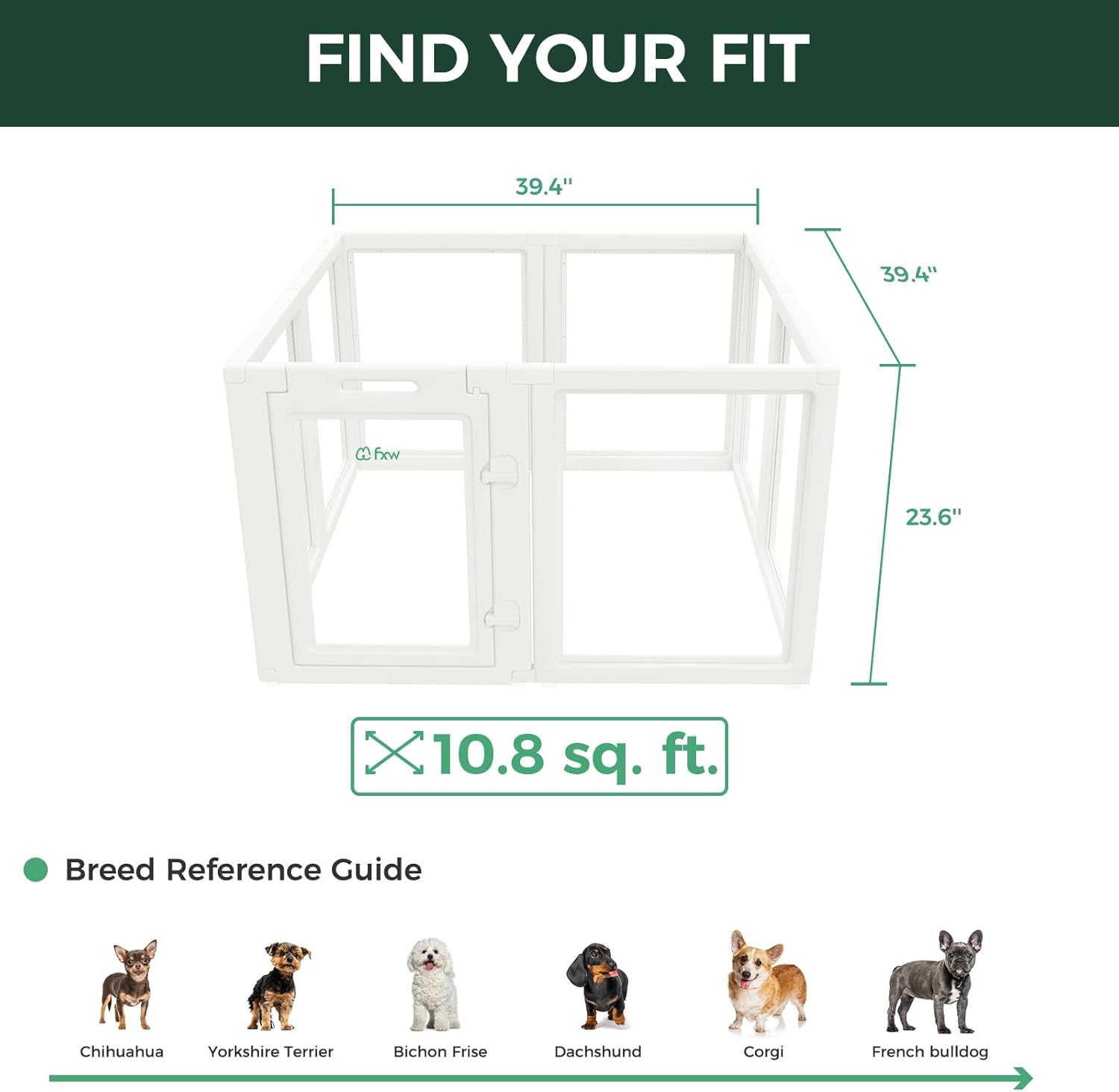FXW AuraSpace Acrylic Indoor Unleashed Dog Playpen for Puppies and Small Dogs, 24 Inch, 8 Panels, White