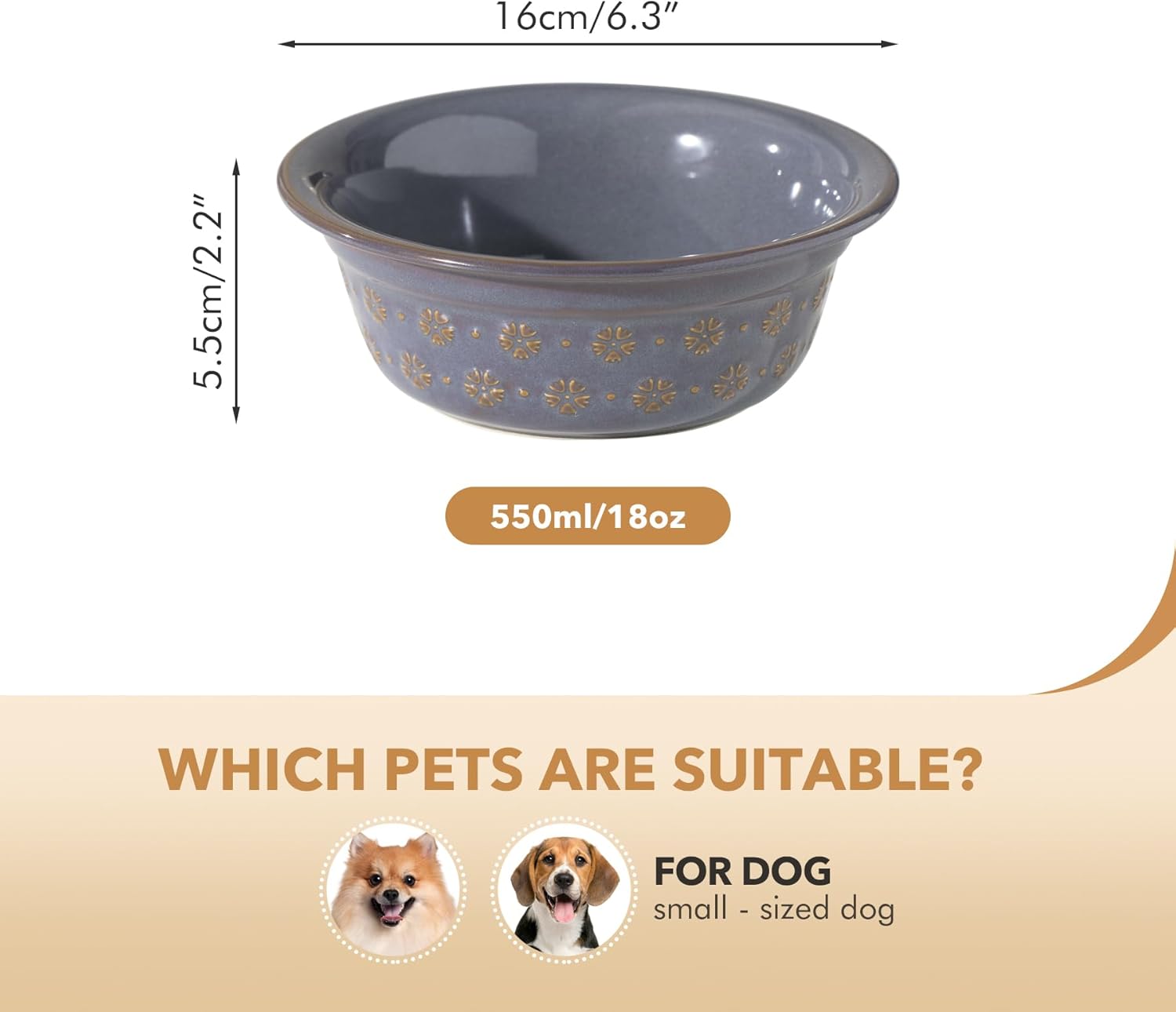 - Healthy Ceramic and Unique Design: Our bowls are made of ceramic material. Ceramic bowl is safe and healthy, lead-free, non-toxic, harmless and durable. According to investigations, plastic bowls are likely to cause black jaws. What's more, our pet bowls feature a reactive glaze which has a beautiful luster and is unique.