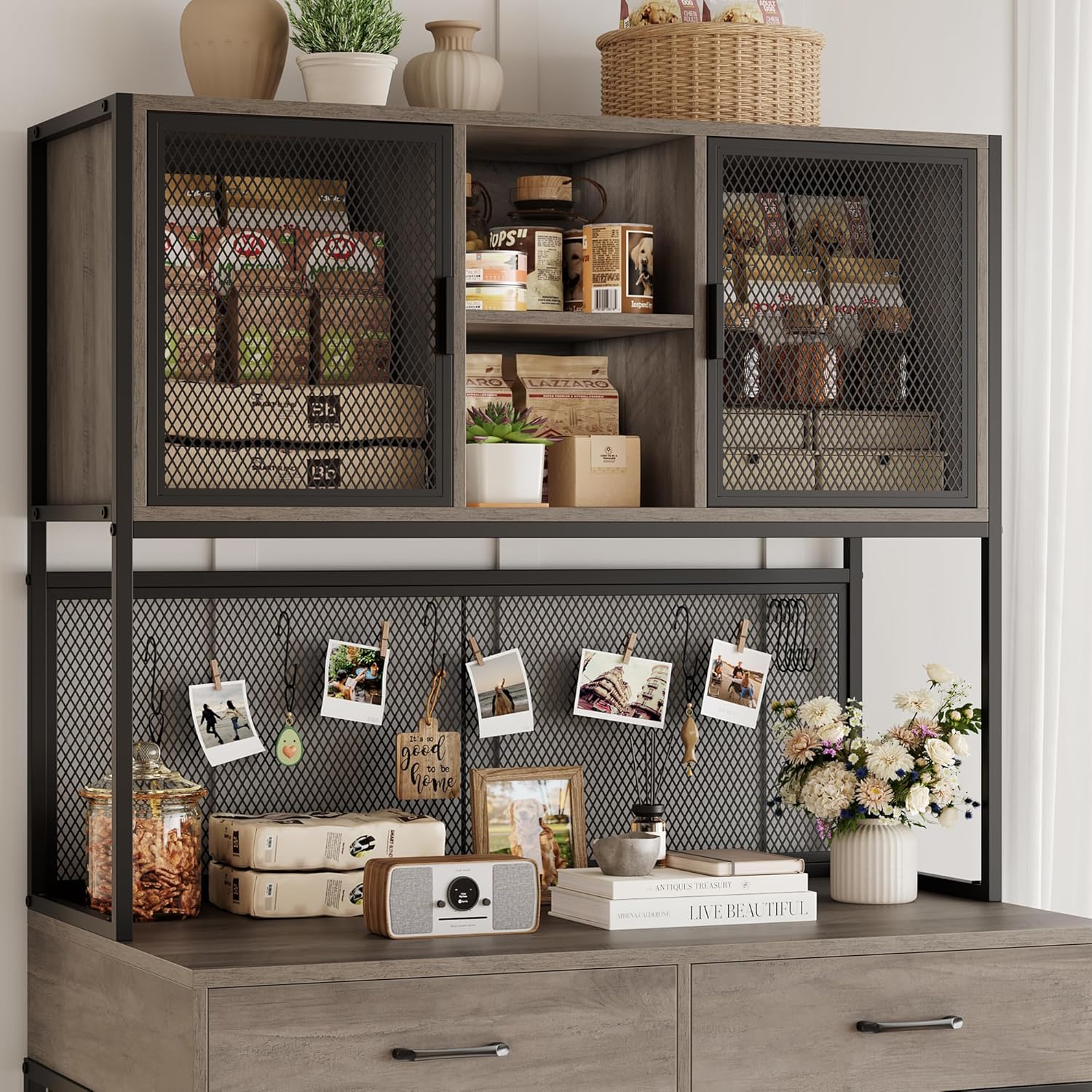 HITHOS 71" Tall Dog Crate Furniture, Indoor Dog Kennel with Hutch, 42" W Dog Cage for Large/Medium Dogs, Wood Dog Crates with 2 Storage Drawers, Heavy Duty Pet House, Ash Grey