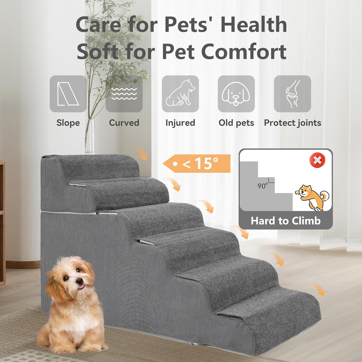 - Customizable Height for Every Adventure: Our dog stairs with 6-step and 7-step designs ,which is uniquely crafted to adapt to your pet's needs. The modular design allows for easy assemblyโsimply zip or unzip the sides to create a 4+2 or 4+3 configuration. Whether your pet needs a gentle incline or a higher climb, these stairs grow with them, offering comfort and confidence every step of the way