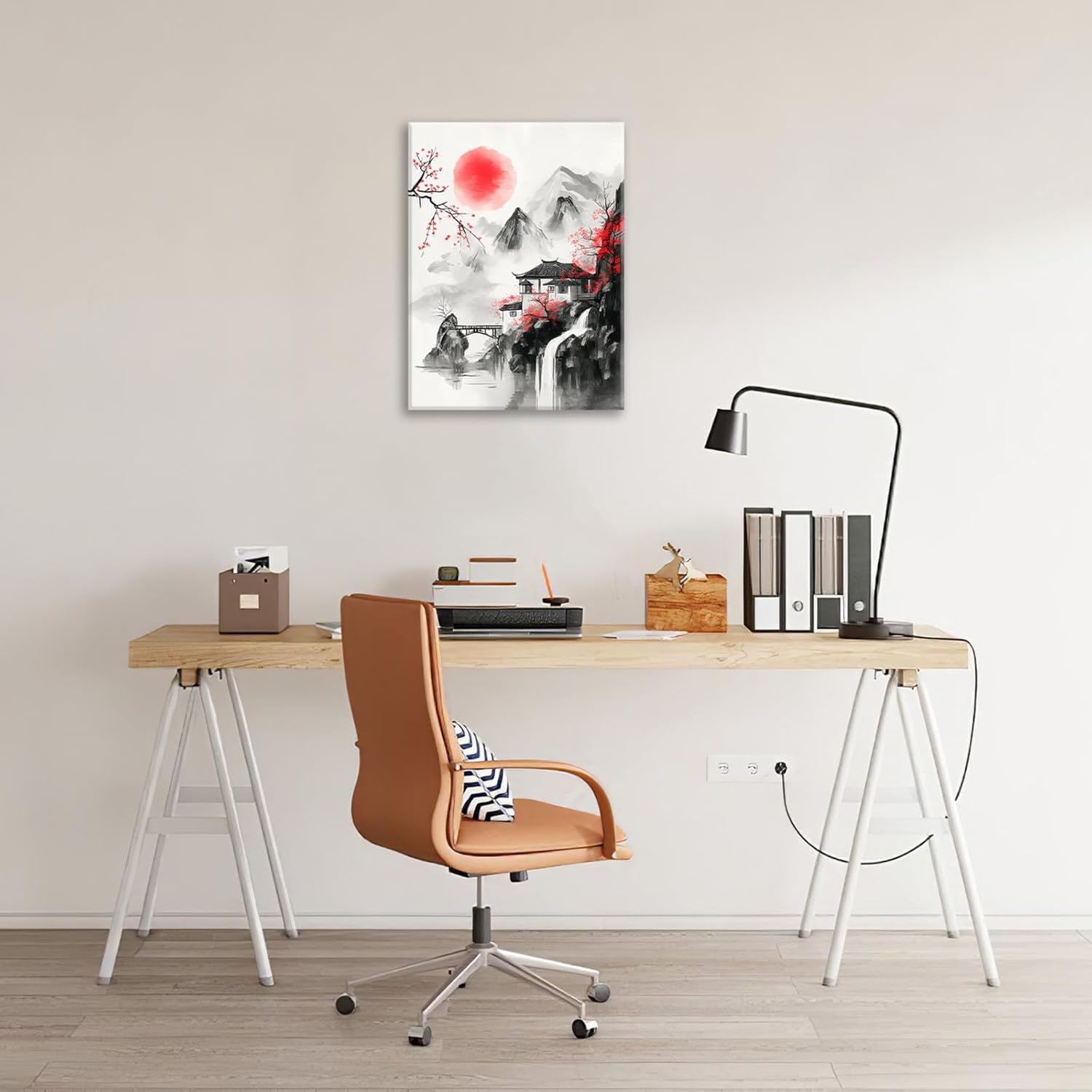Japanese Wall Art Canvas Asian Nature Wall Decor Prints Framed Painting Mountain Landscape Pictures Gifts Artwork for Bathroom 12"x16"