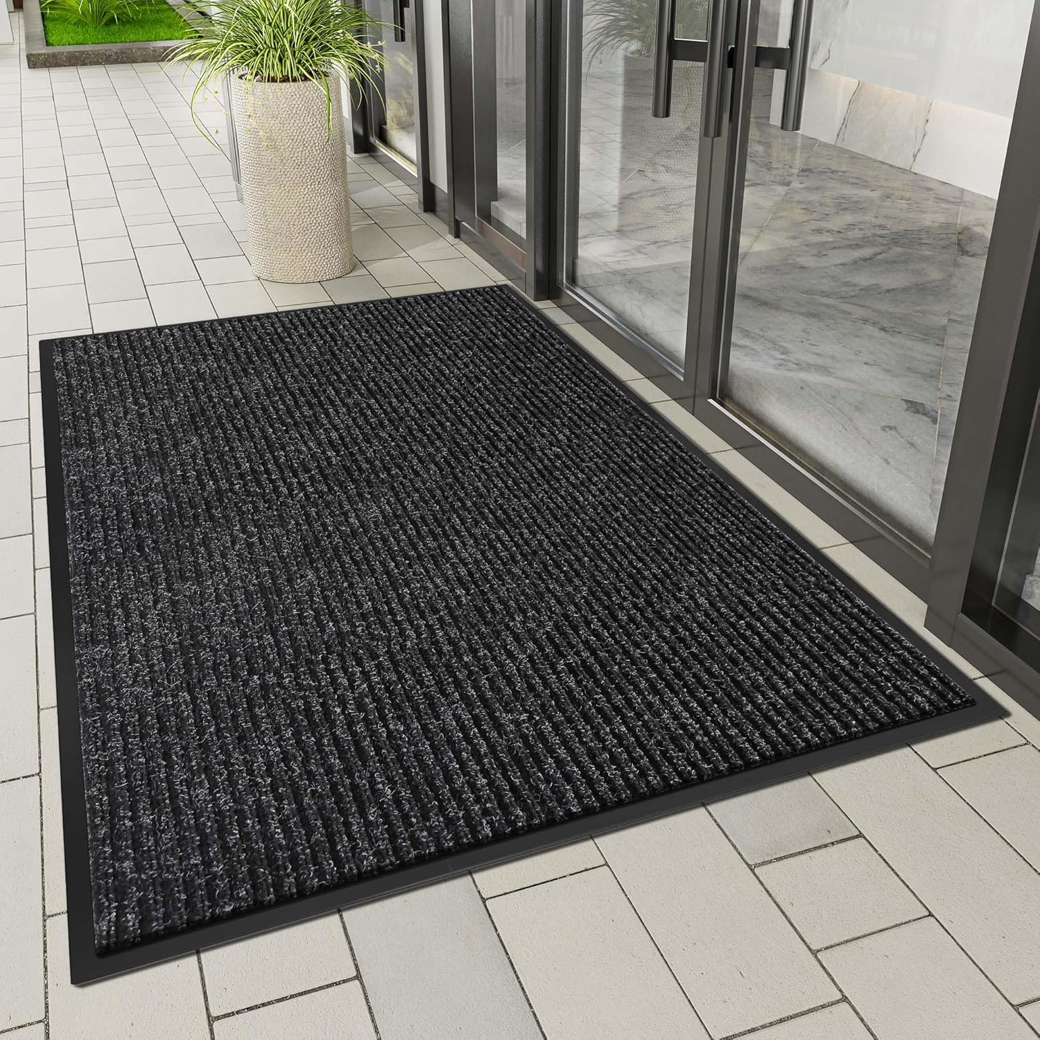 Indoor Outdoor Door Mat, 6' x 4' Doormat for Entryway, Rubber Backing Non Slip Front Door Mat Outside Entrance, Super Absorbent Commercial Floor Mat for Home Office, Black