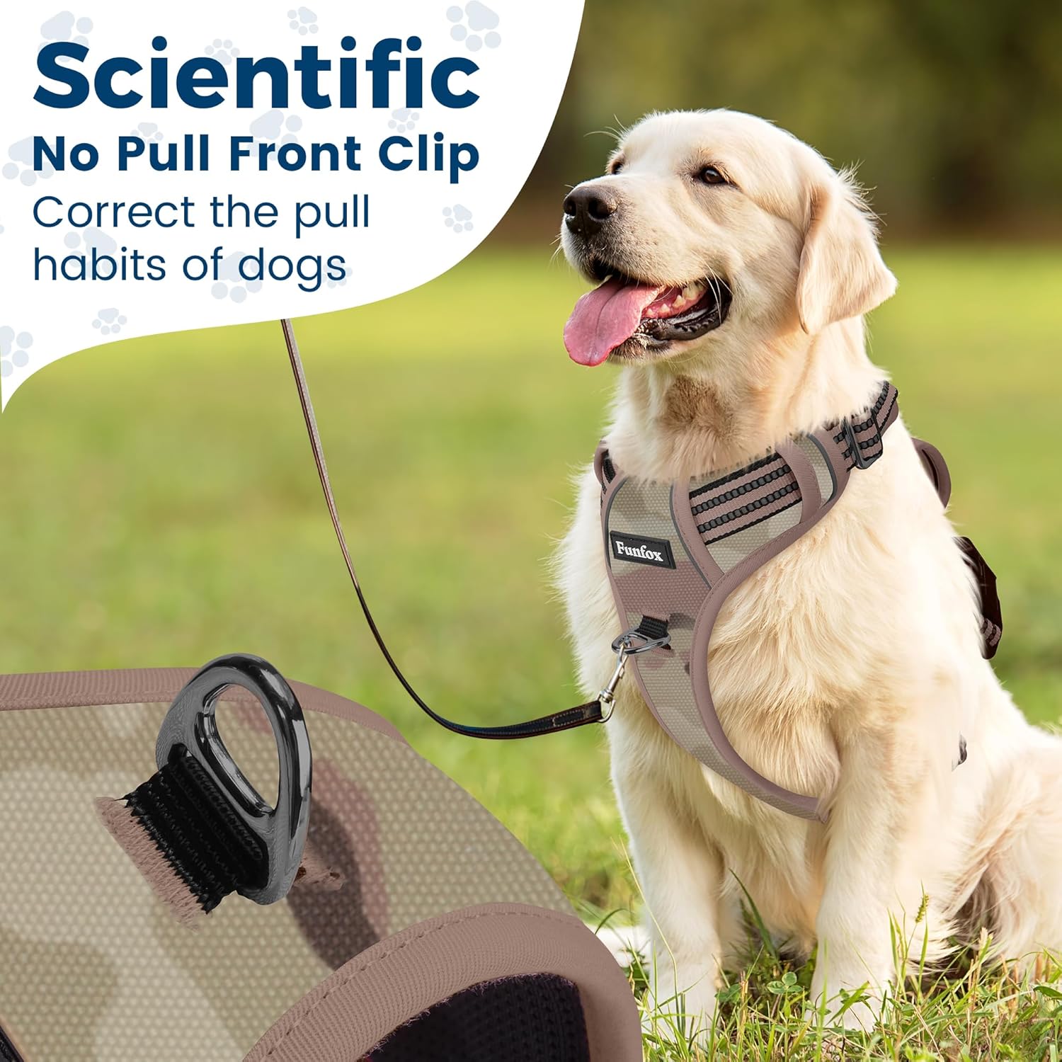 Funfox Dog Harness No Pull, Adjustable Pet Vest Harness, Super Soft Material with Vertical Handle Easy Control, Reflective Night Walking, 2 Leash Clips for XLarge Dogs, Camo Brown, XL