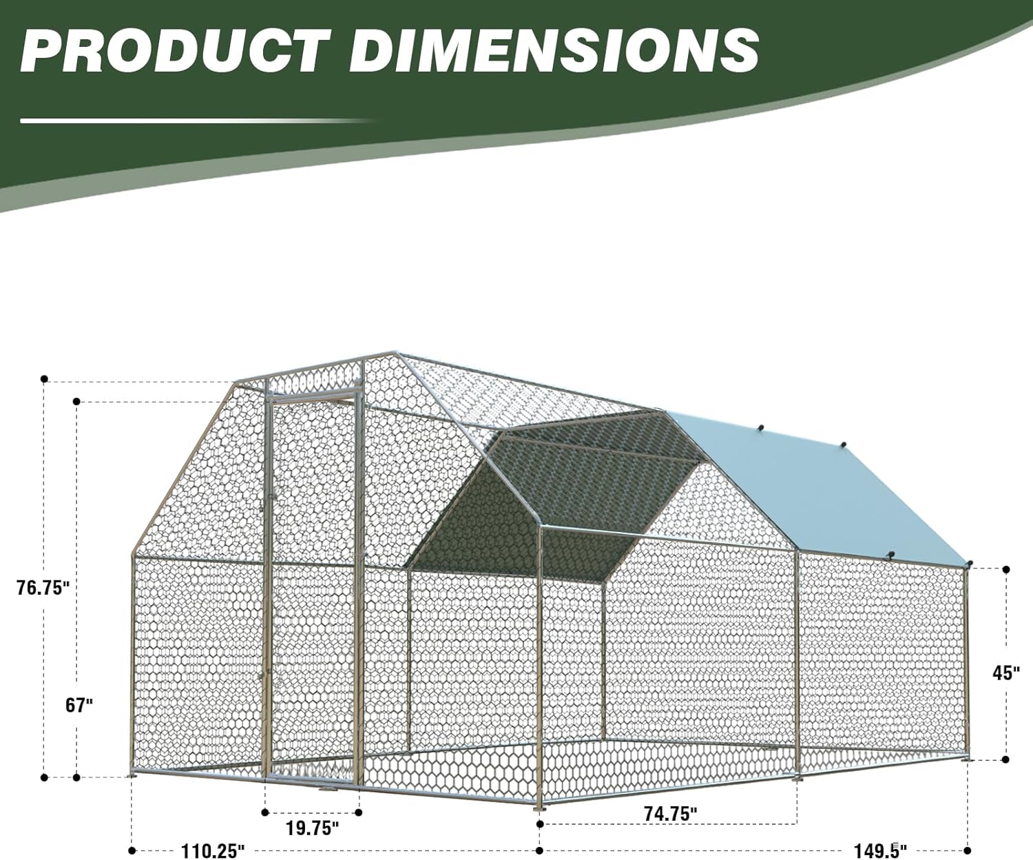 - 【Large Space for 20 Chickens】: The metal chicken coops measures 9.2’Lx12.47’Wx6.4’H and can accommodate around 20 chickens at a time. 6.4' height provides plenty of space for chickens to move around during the day