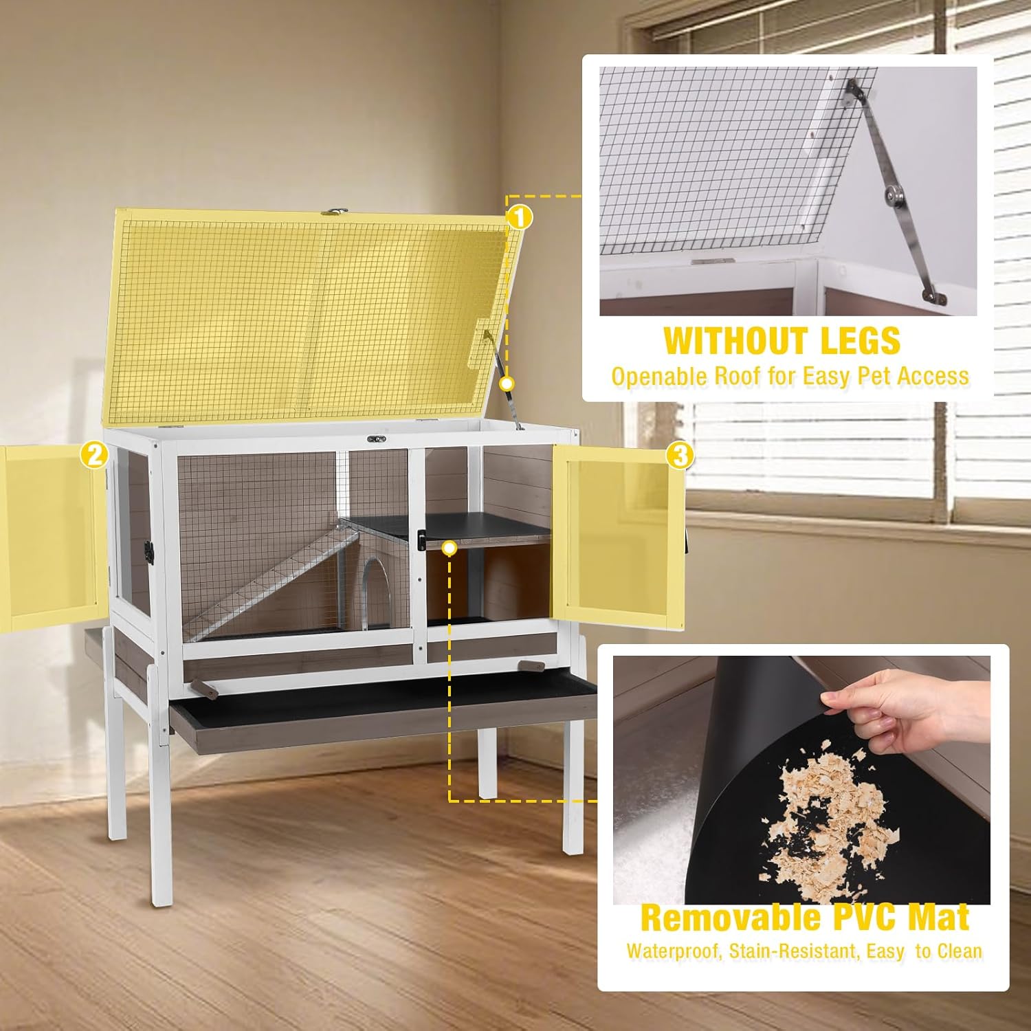 - Easy-Clean Removable Tray System: Includes a deep slide-out tray + removable wire floor. Side access door simplifies waste removal for a hygienic habitat.