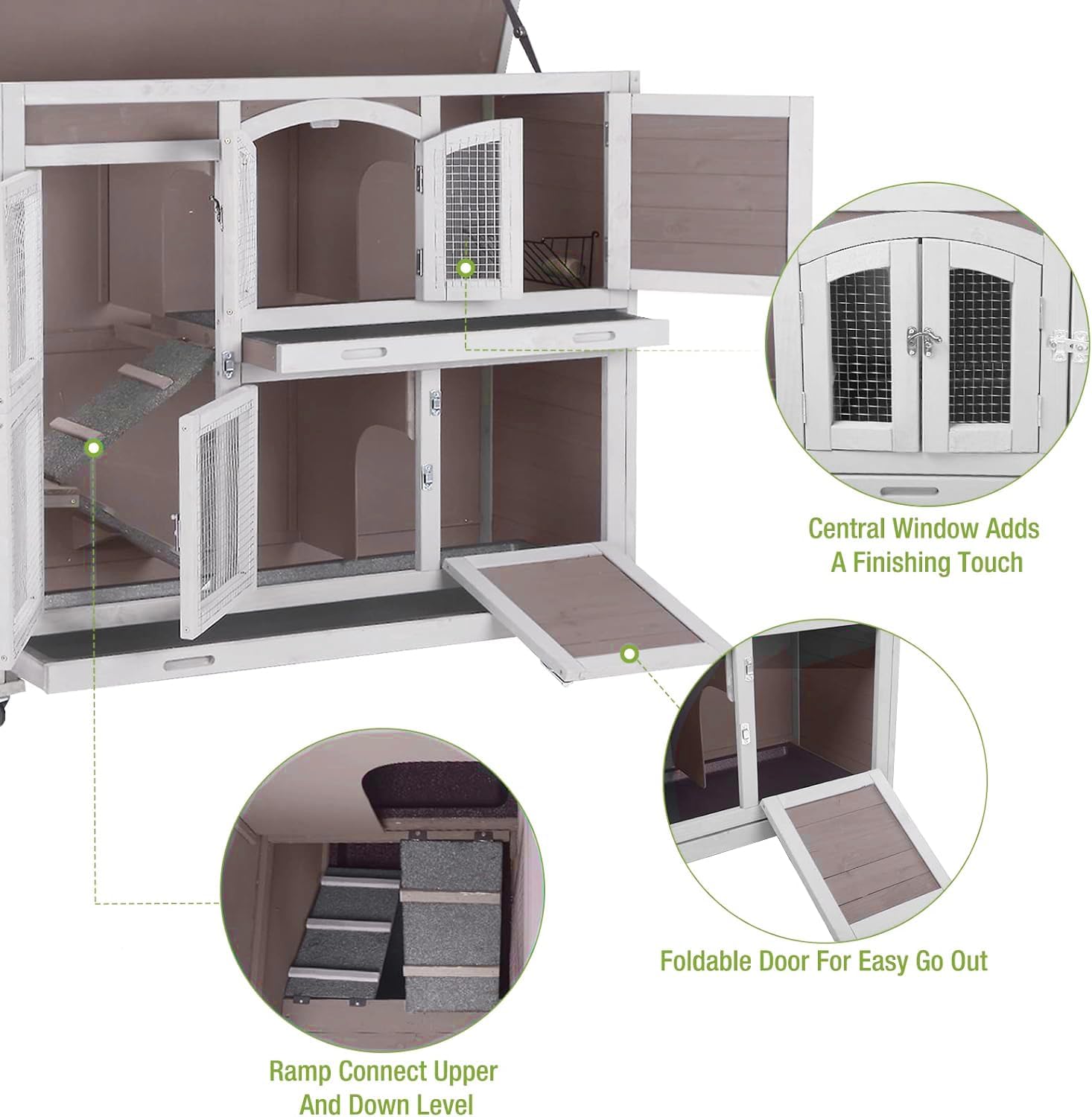 - Attractive Design: Central window adds a lots of funny, 4 lockable front doors provide unlimited view to bunny' activity