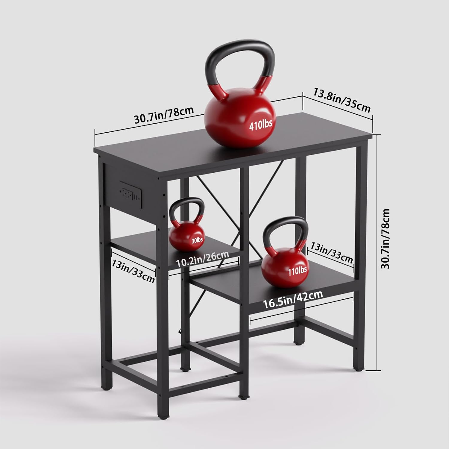 20-29 Gallon Fish Tank Stand with Power Outlet & LED Light, Metal Aquarium Stand with 3 Tier Adjustable Storage Shelves, Tank Stand for Reptile Tank, Turtle Tank, 30.7" L*13.8" W, Black