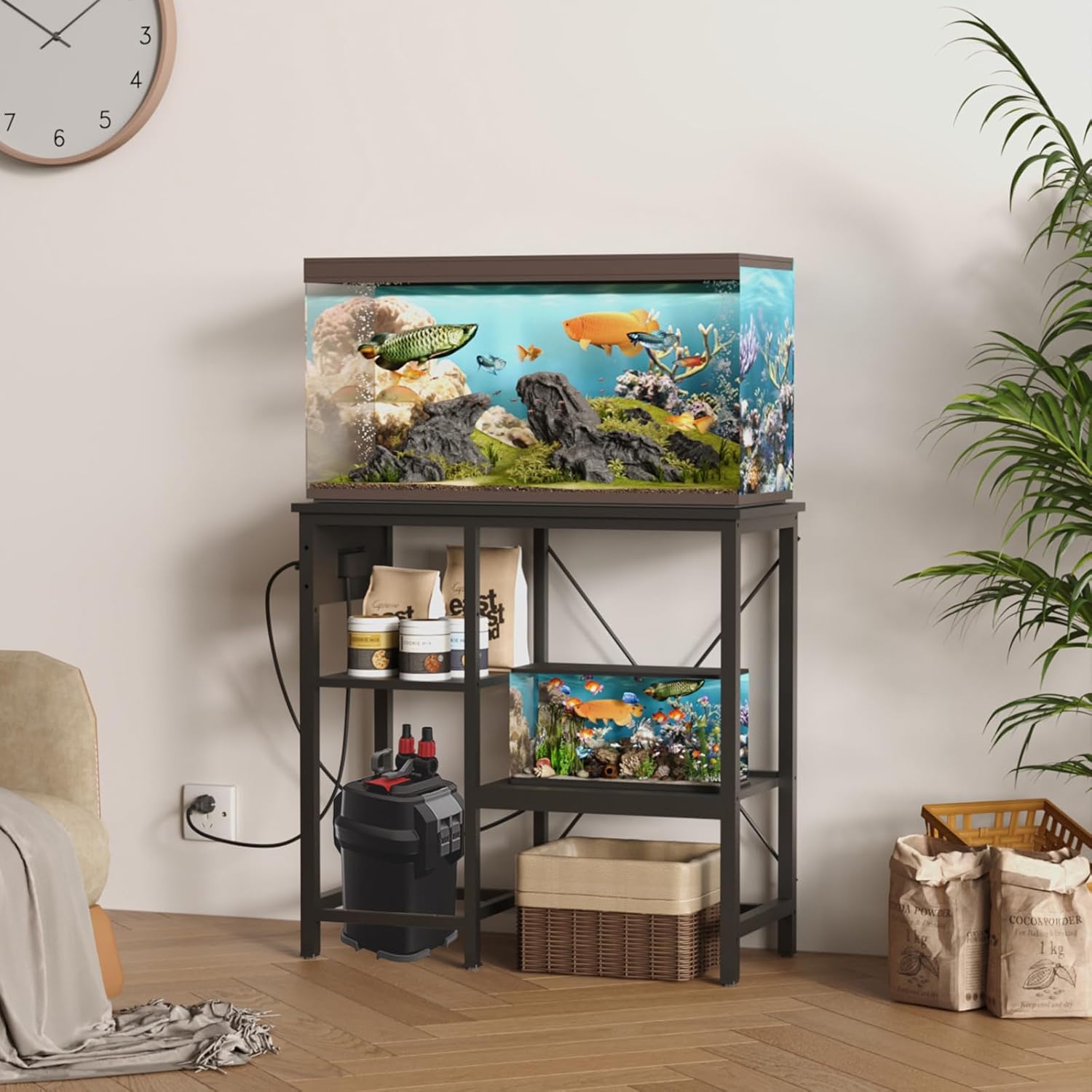 - Adjustable Aquarium Stand: The reptile tank stand has 3 tier design, the top holds 20-29 gallon fish tanks, the second and third tier can be adjusted by adjusting the height to hold aquarium tanks, fish food, cleaners, storage baskets and more