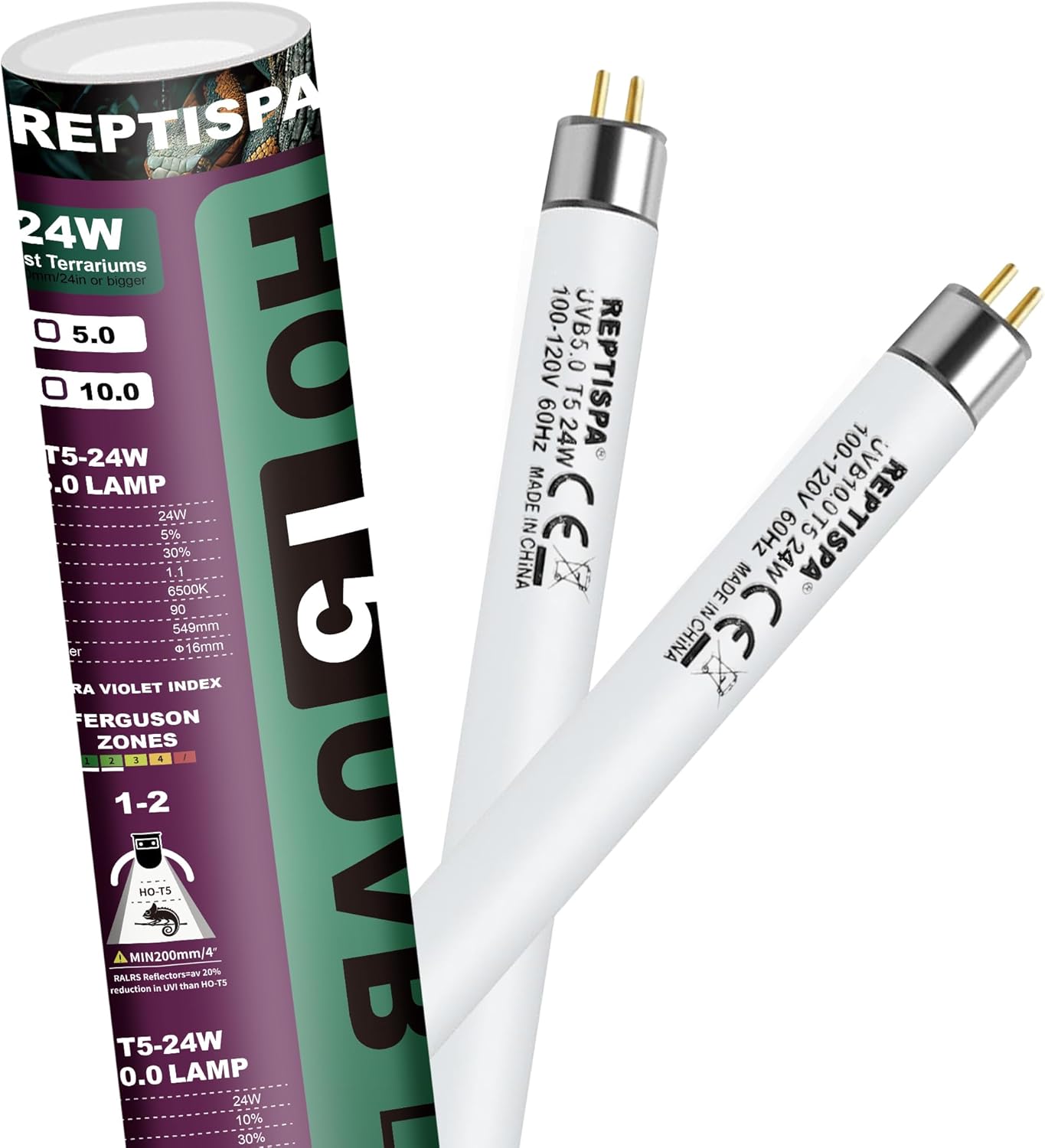 - EFFICIENT & EASY TO INSTALL: REPTISPA reptile light is a reliable and consistent UVB light source for reptiles. The UVB bulb is capable of wider and more stable illumination without flickering. REPTISPA unique filament also enables a longer lifespan. This sleek terrarium light tube is space-saving and can easily fit into various reptile light fixtures.