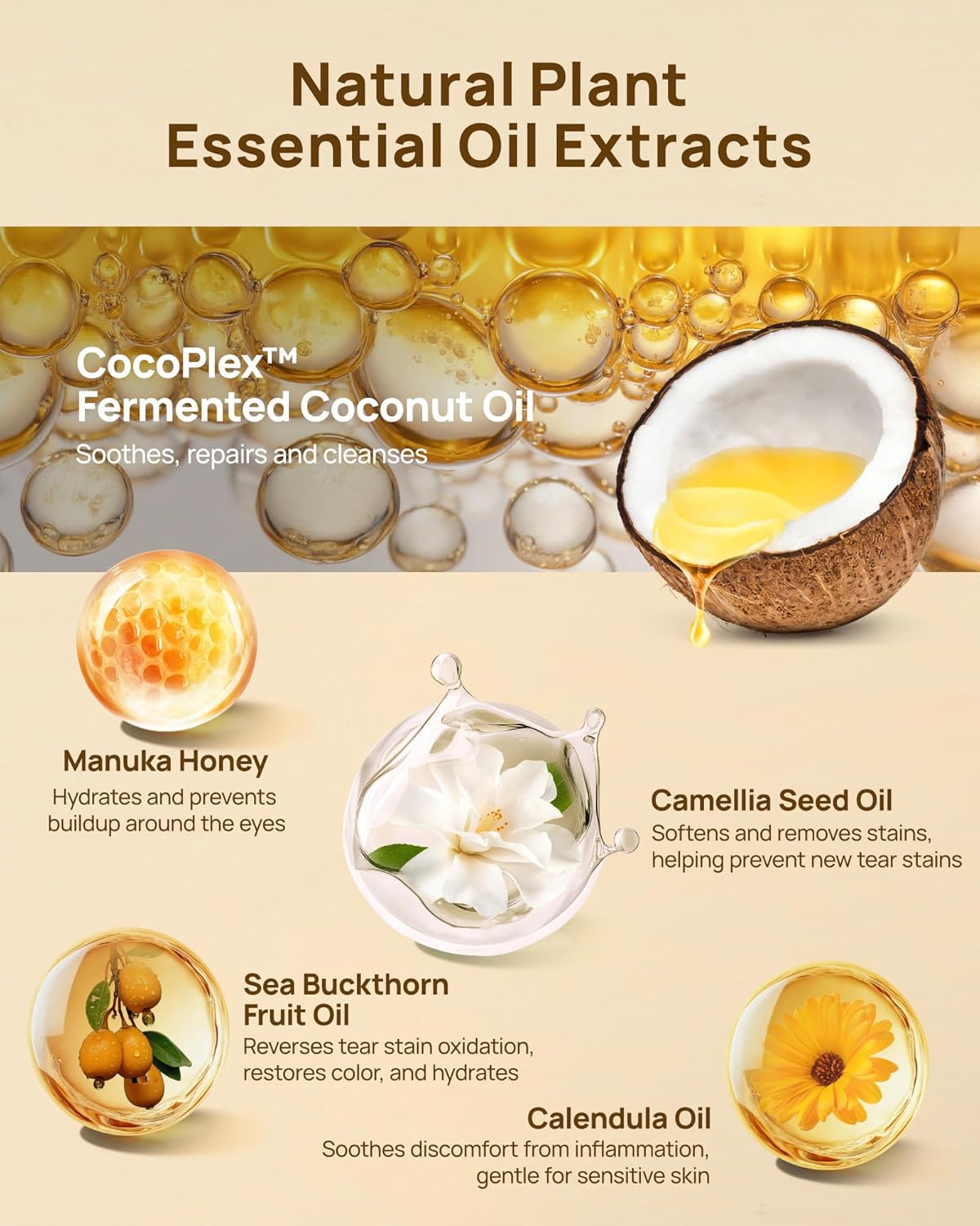- Rapid Penetration for Deep Nourishment - Advanced small molecule essential oil technology penetrates faster than traditional formulas, deeply nourishing the skin around the pet's eye area while forming a protective barrier against irritants. This dog tear stain remover is ideal for sensitive eyes, with gentle absorption that won't clump or leave residue, eliminating extra cleaning hassles.