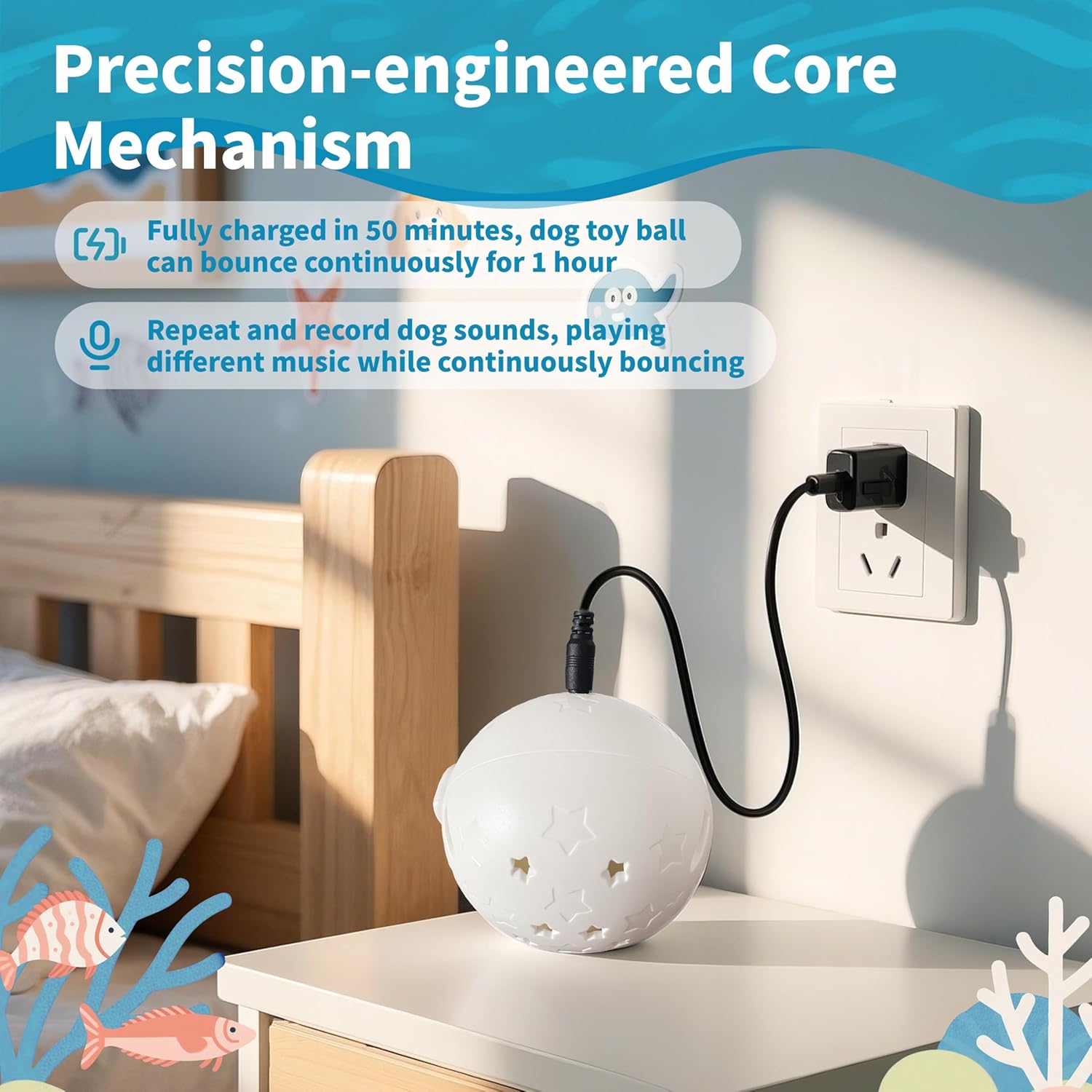 - [Active Moving Dog Toy]: The interactive dog toy features a bouncing, recording, and music mode, allowing your furry friend to engage with the dog toy ball by simply tapping it. The built-in motion and recording sensors enable the interactive dog ball to vibrate, record your dog's voice, and play classic tunes, encouraging dogs to have endless play and excitement.