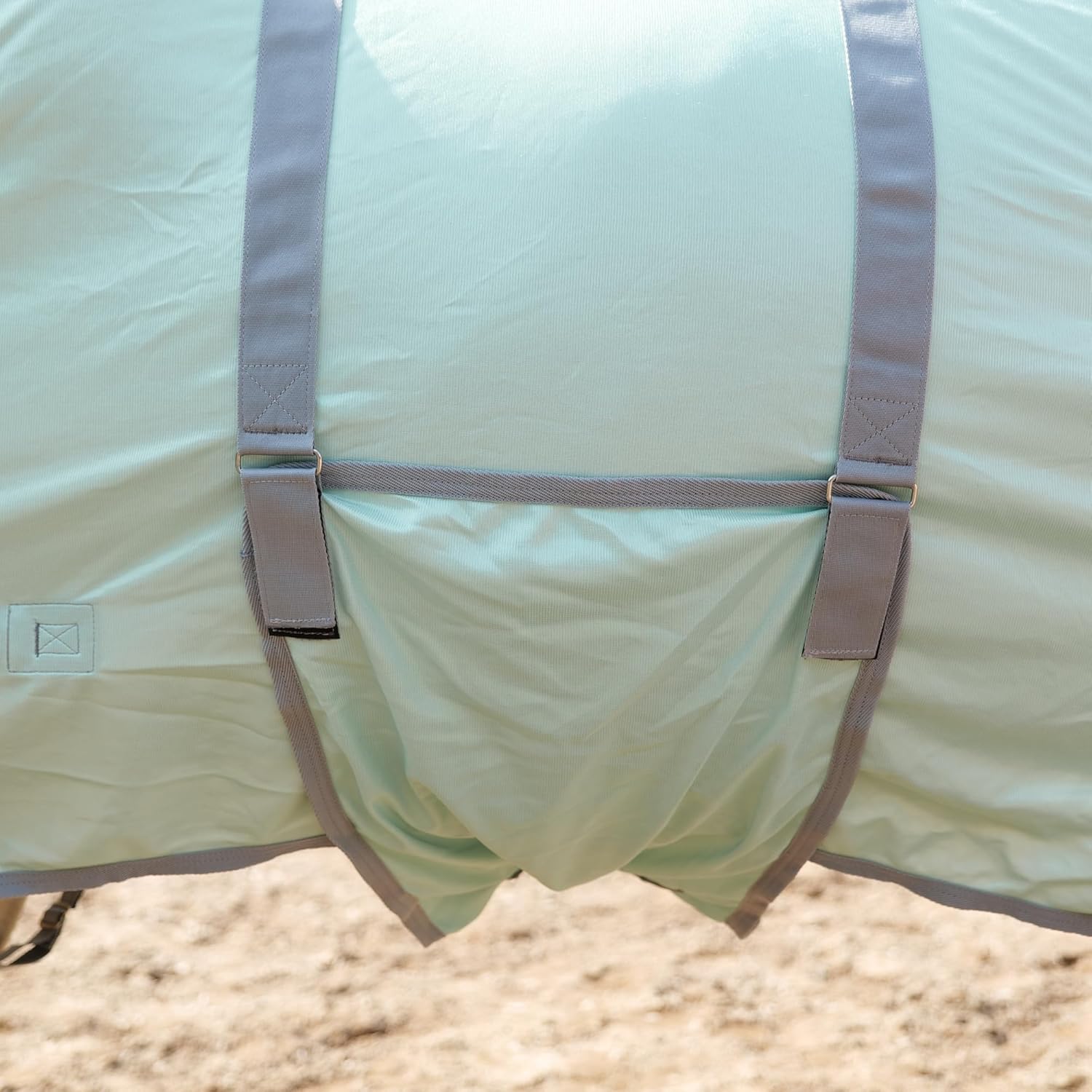 Horse Fly Sheet with Detachable Neck Cover & Belly Wrap, Adjustable Fly Sheet for Horses, Ventilated Airflow Mesh Equine Cooling Summer Flysheet Green 75