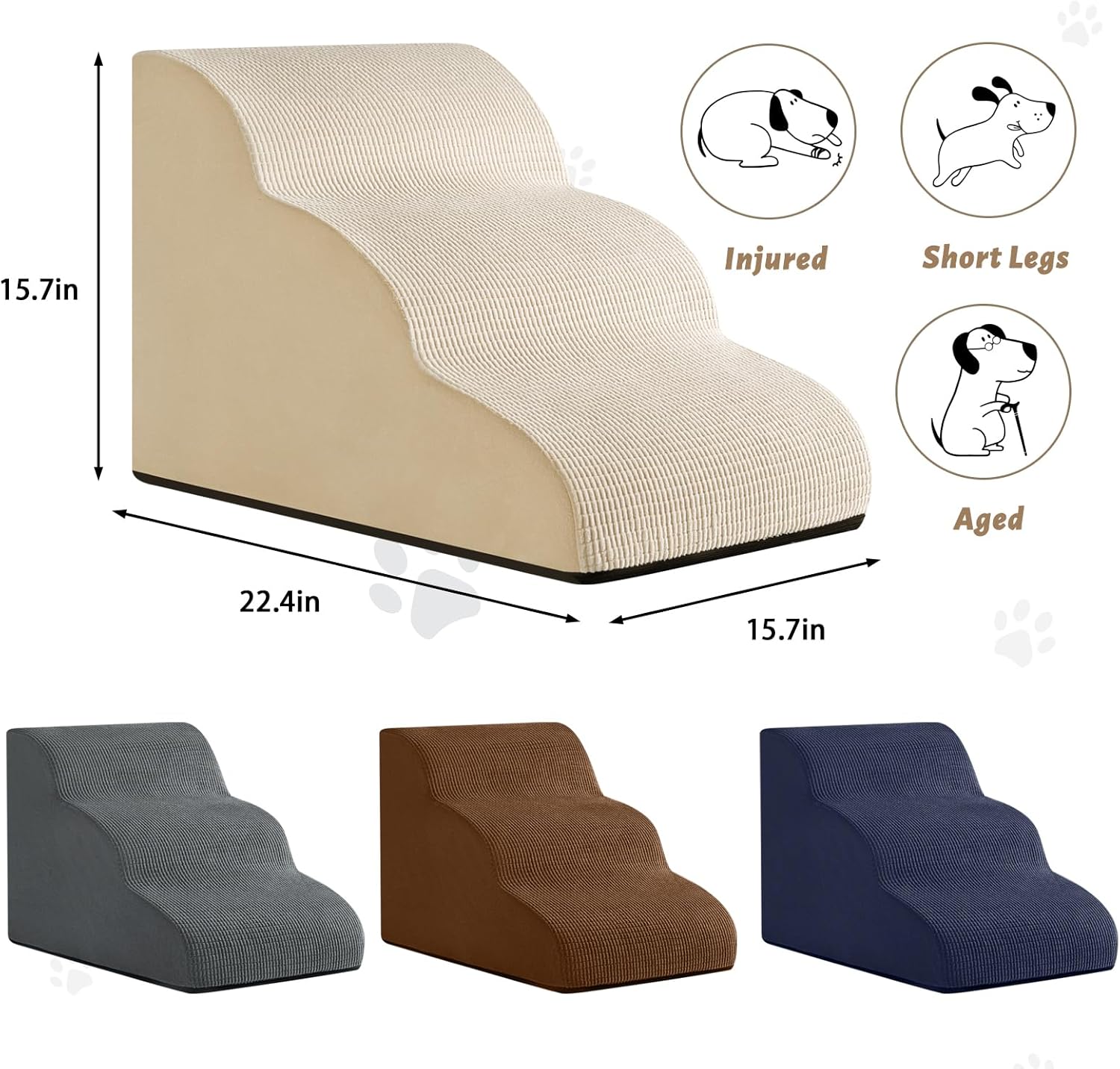 3-Step Dog Ramp and Stairs for Sofa and Chair - Non-Slip Sturdy Pet Steps for Small Dogs and Cats,15.7" H,Beige