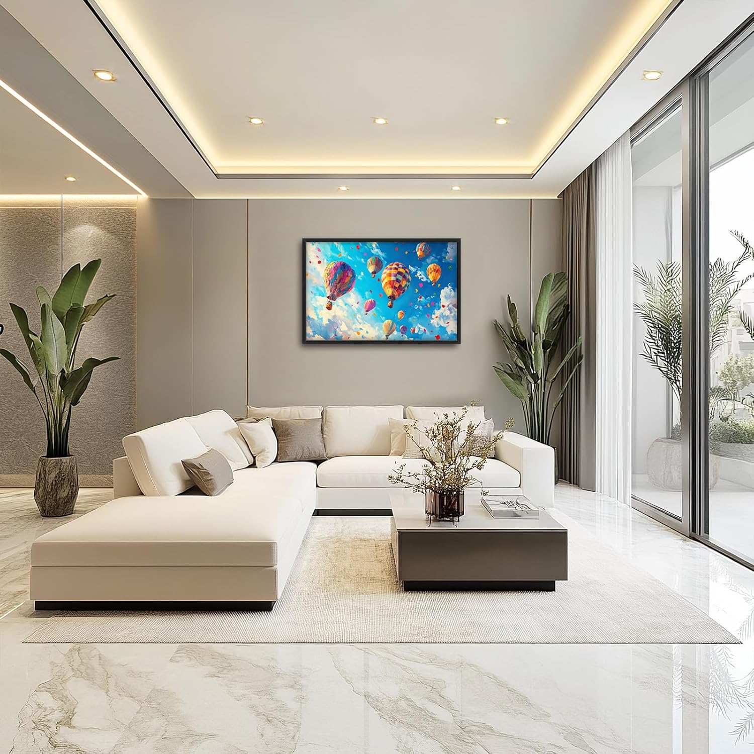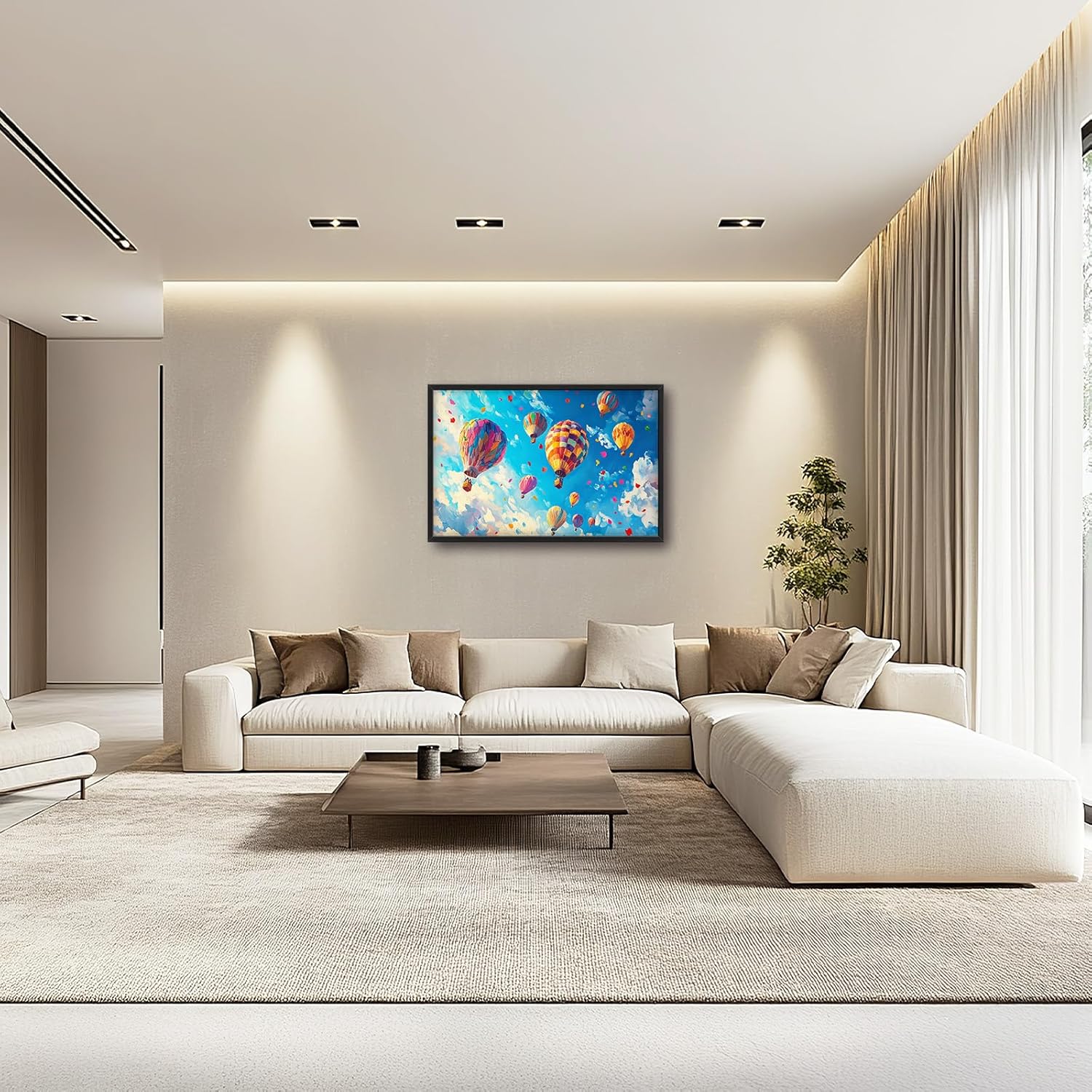 Hot Air Balloon Large Wall Art for Living Room, Framed Oversized Hot Air Balloon Wall Decor Colorful Sky Canvas Painting Modern Artwork for Living Room Bedroom Office Dinging Room 36"x24"