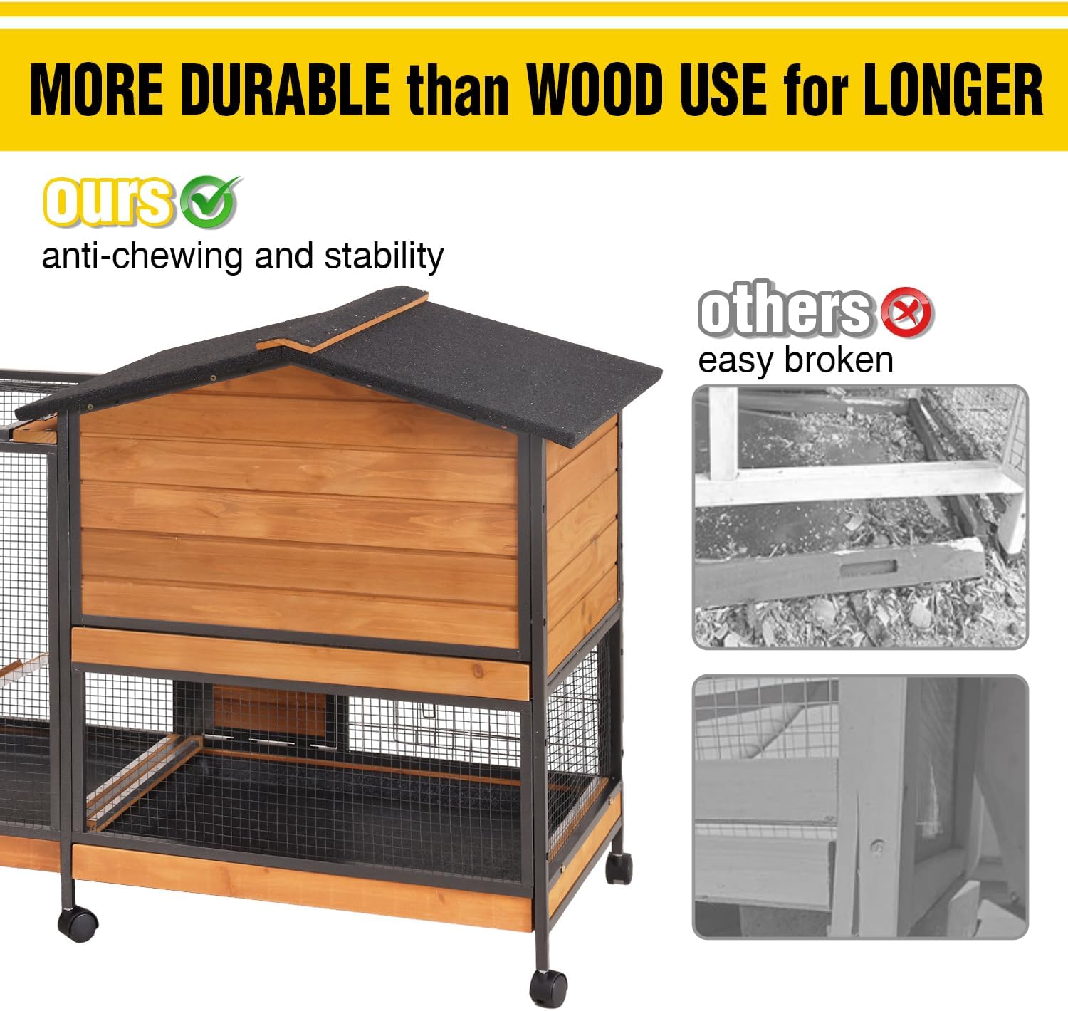 AIVITUVIN Rabbit Hutch Indoor with Metal Frame Rabbit Cage with Pull Out Tray No Leakage Bunny Cage with Wheel Guinea Pig Cage
