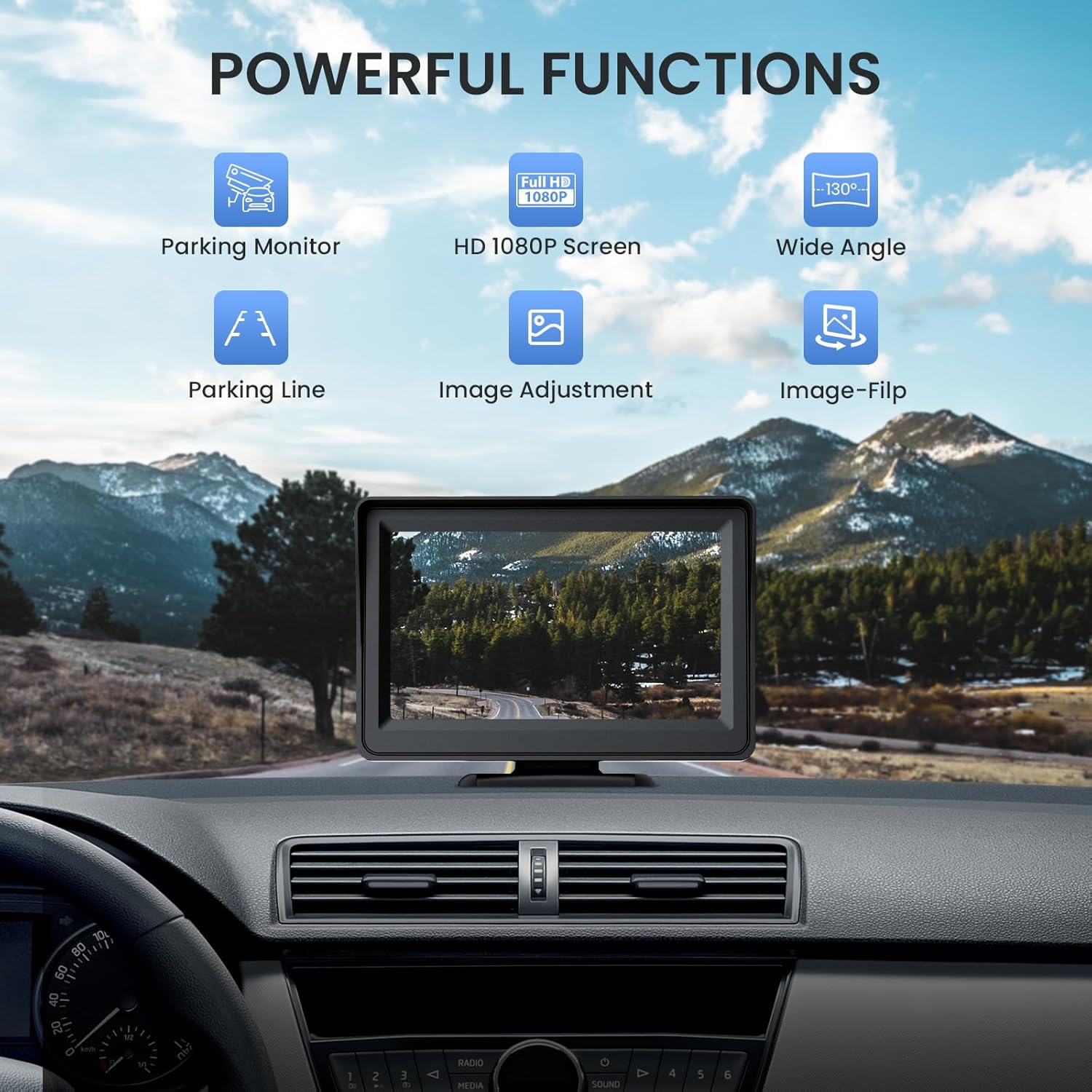 5'' HD 1080P Backup Camera, Backup Camera for Car, Reverse Rear Camera with Night Version 130° Wide Angle, Waterproof, Strong Signal for Car, Van, Truck, Trailer