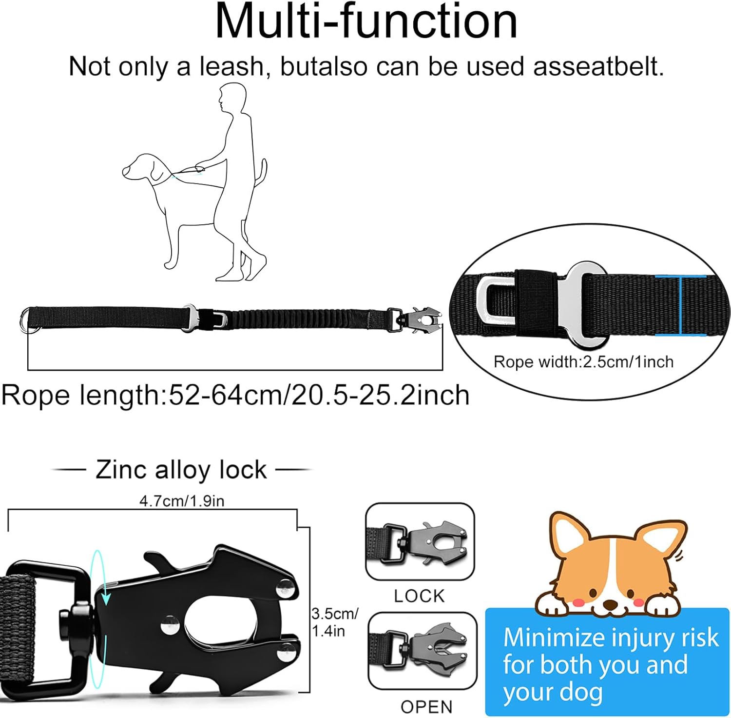 20” Strong Short Leash for Dog, Heavy Duty Bungee Dogs Leash with Padded Handle Car Seatbelt, Small Dog Training Leashs for Large or Medium Dogs - Can be Used with Other leashes (Black)