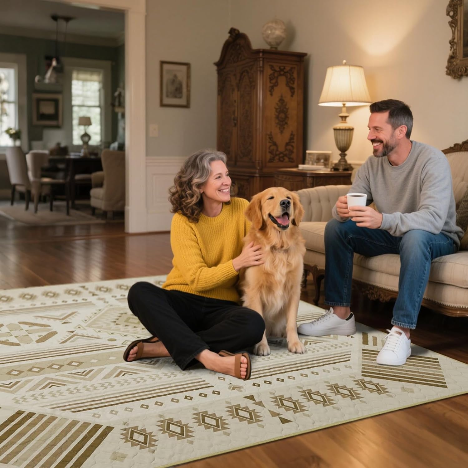 FXW Washable Pee Pads for Dogs, Puppy Pads with Super Absorbent, Specifically Designed for FXW Rollick/Homeplus 32 inch 8 Panels Dog Playpen, 71" Square, Khaki Geometric, 1 Pack