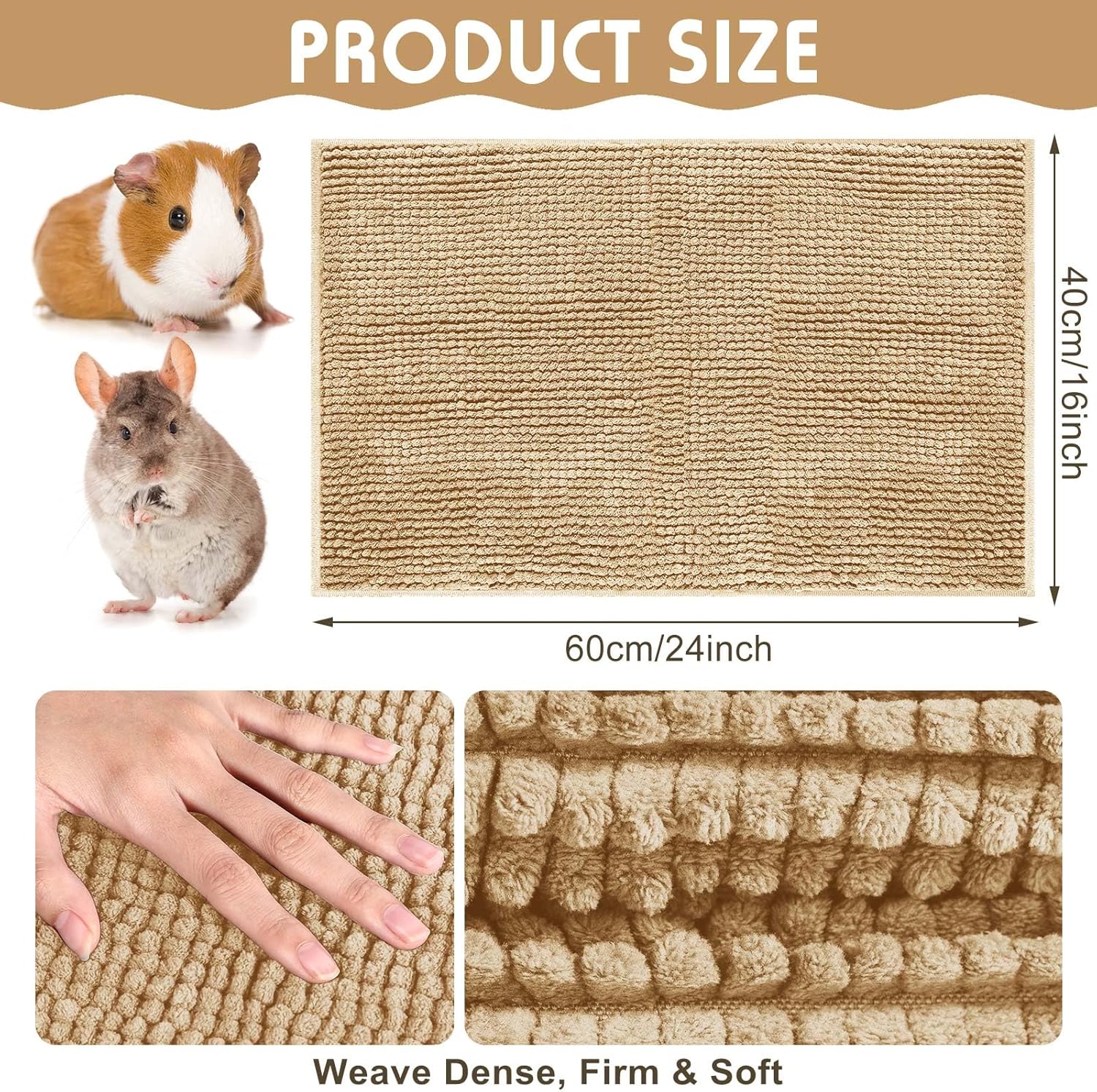 - Proper Size for Small Pets: our guinea pig cage liners come with a size of about 16 x 24 inches/ 40 x 60 cm, suitable for small animals, such as guinea pigs, rabbits, chinchillas, squirrels, hamsters, rats, puppies, hedgehog, ferrets, cats and other similar size small pets, and can also serve as dog bowl pads or cat litter pads to keep areas clean and tidy
