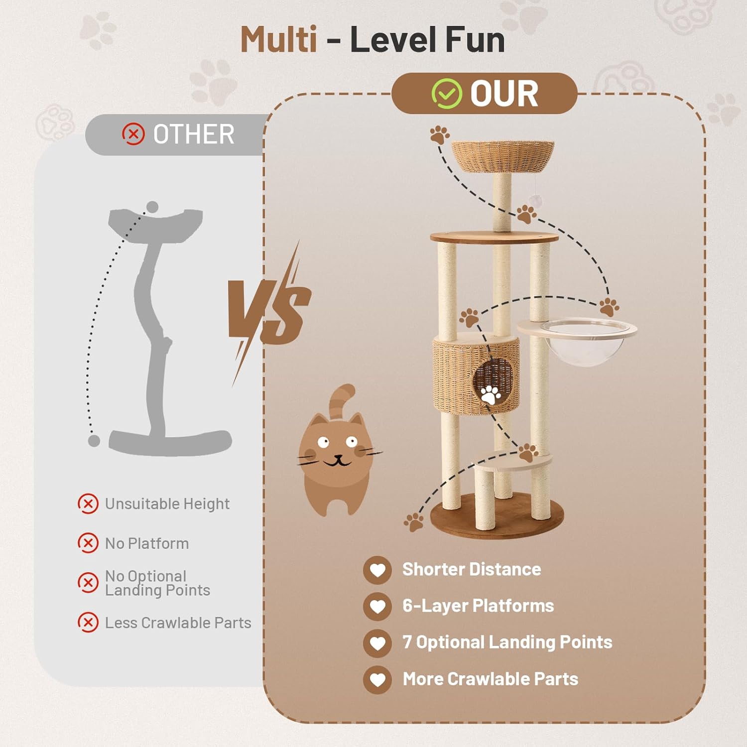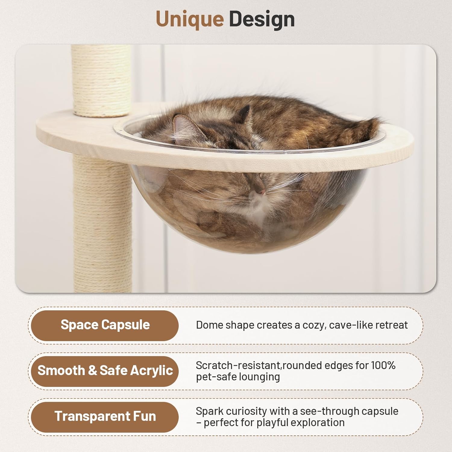Heavy Duty Cat Tree with Scratching Post,Capsule,Basket,and Bed Modern Tall Cat Condo for Indoor Large