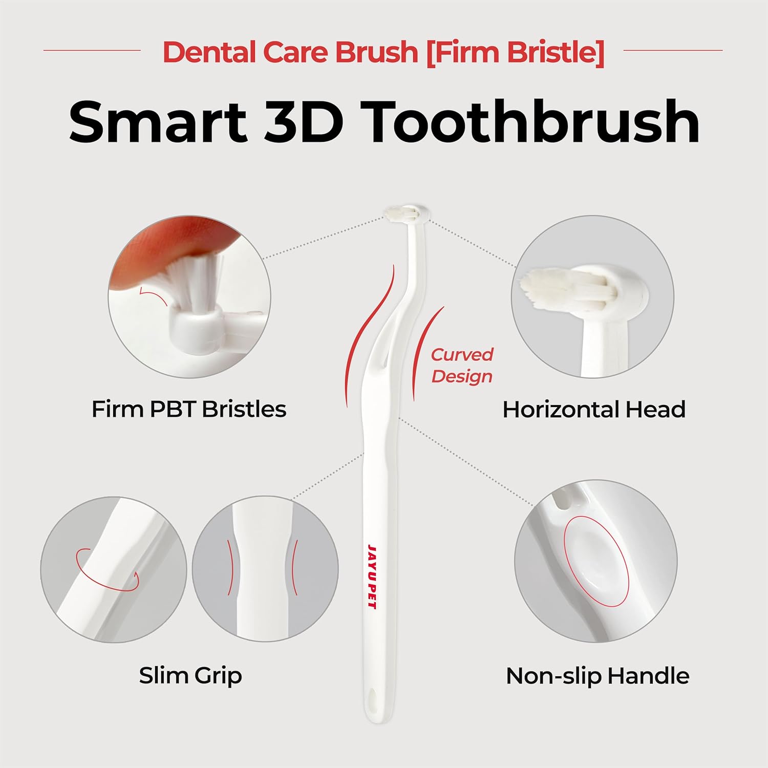 JAYU PET Dental Care Brush (Firm Bristles) 3ea - Resilient Dog Toothbrush, Cat Toothbrush for Tartar & Plaque Removal, Horizontal Head and S-Curved Body