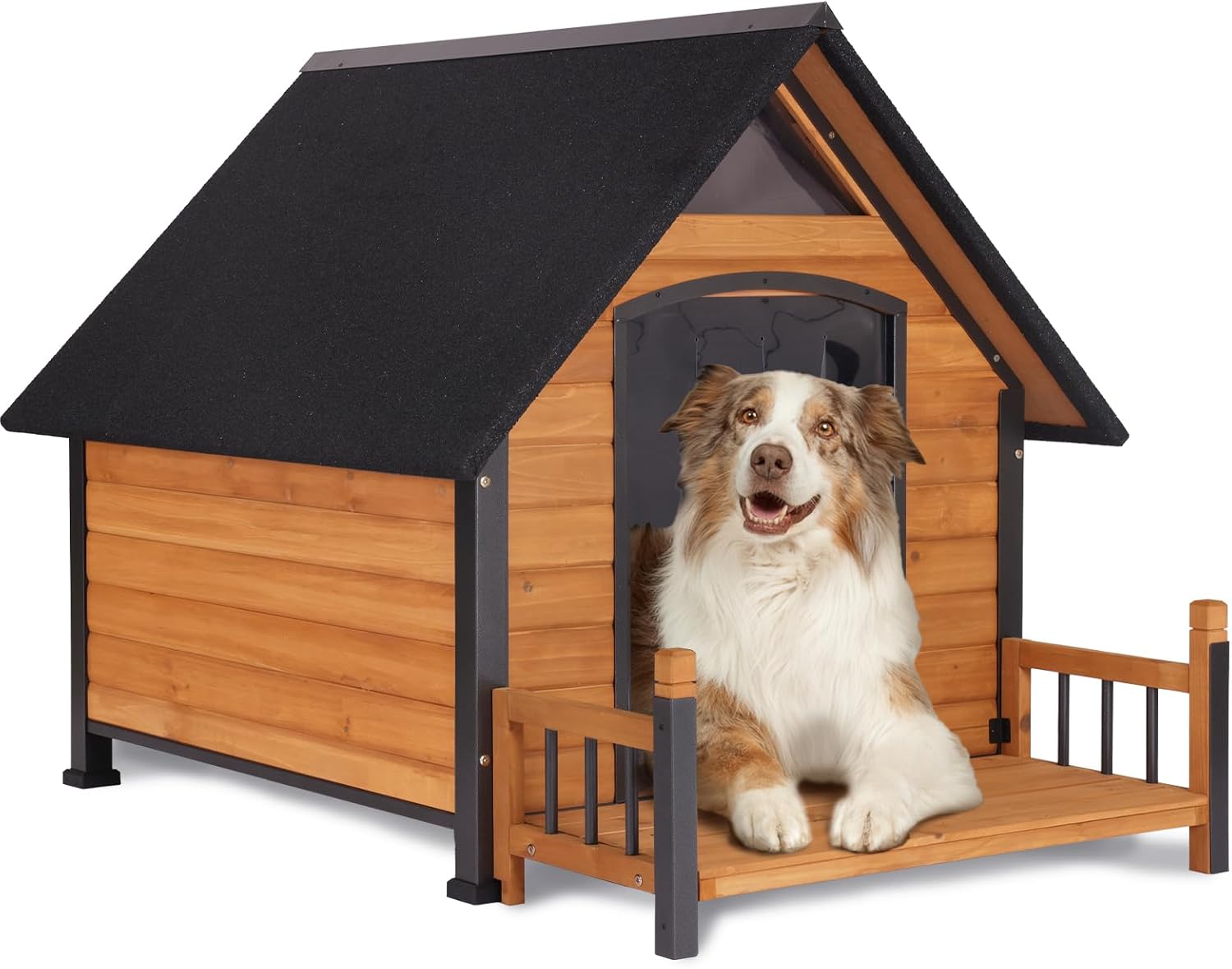 - Spacious and Comfortable: With dimensions of 37.4" x 36.6" x 37.2", this dog house provides ample space for large breeds. The raised platform and wooden floor offer a comfortable and cool sleeping area