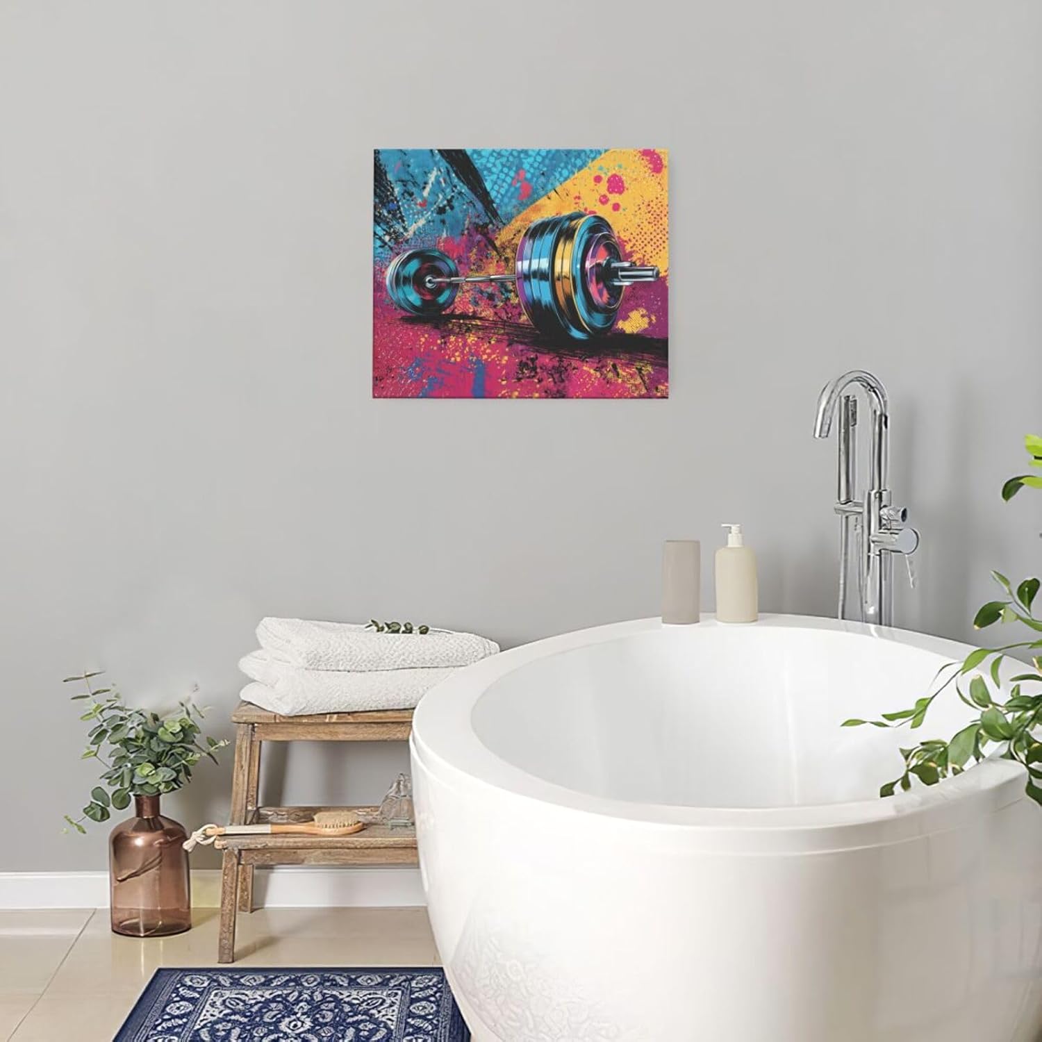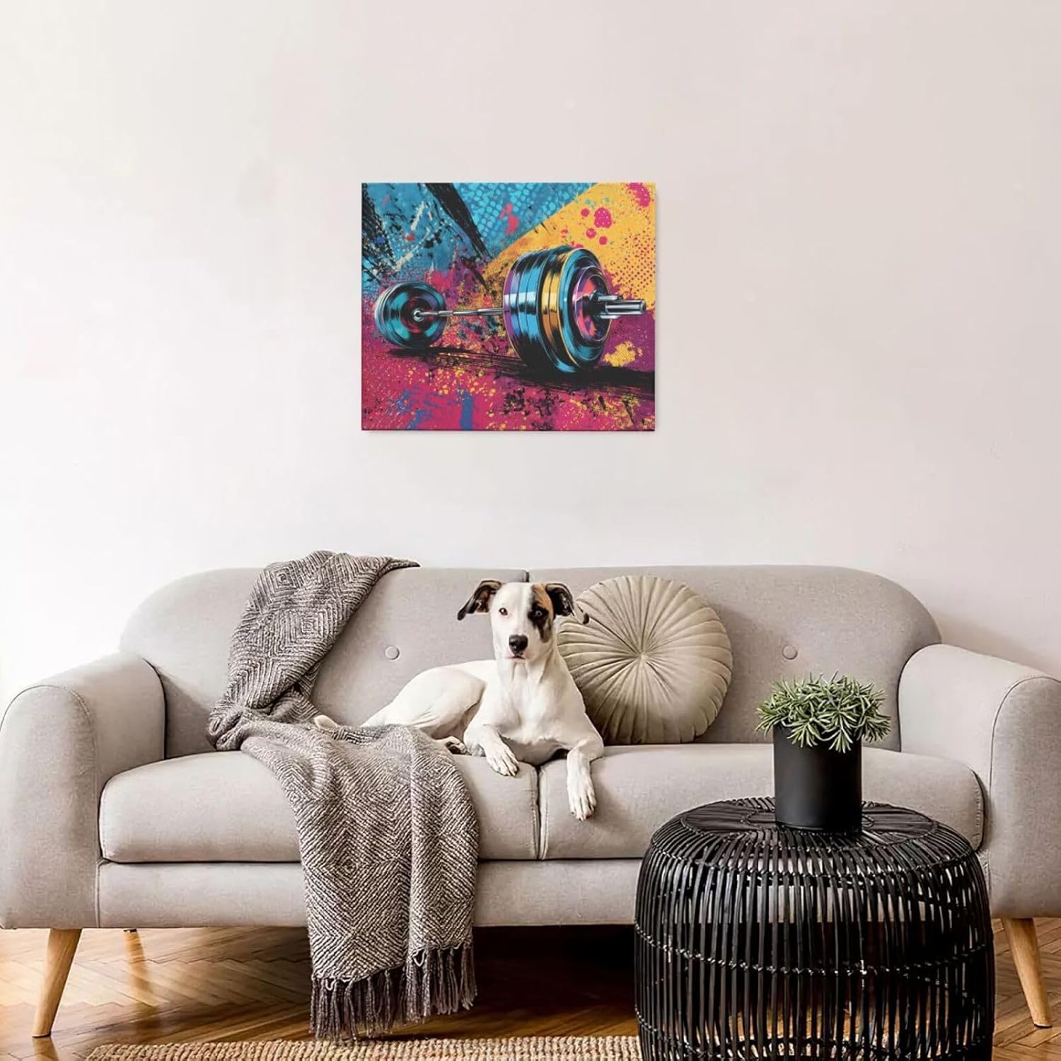 Gym Wall Art Weightlifting Fitness Canvas Wall Decor Barbell Sports Training Pictures Painting Banksy Street Graffiti Print Artwork Framed Decorations Gifts for Sports Lovers Gym Living Room Bedroom 20"x24"