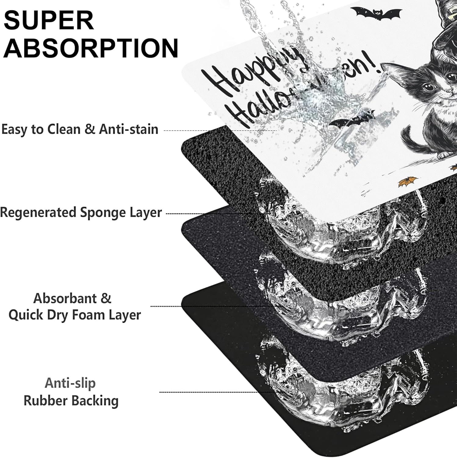 Halloween Cat Dachshund Dog Cat Food Mat-Absorbent Placemat for Food and Water Bowl, Waterproof Non Slip Rubber Backing Dog Food Mats for Floors, Pet Supplies 12 * 20 inch