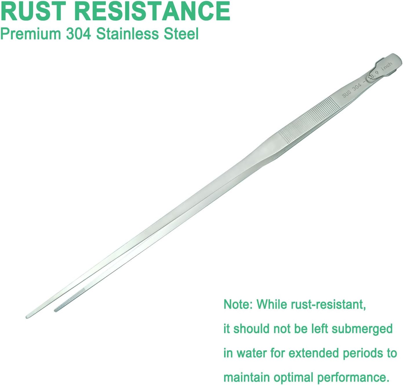 - √【EXTRA-LONG 18.9-INCH LENGTH - STRAIGHT TIP】As a standout long tweezers, its extended 18.9-inch length provides ample reach to access deep areas of aquariums, terrariums, or reptile enclosures without disturbing the habitat. It’s perfect for safely reaching into tall tanks, deep terrariums, or enclosures housing snakes and other reptiles, keeping hands at a safe distance.