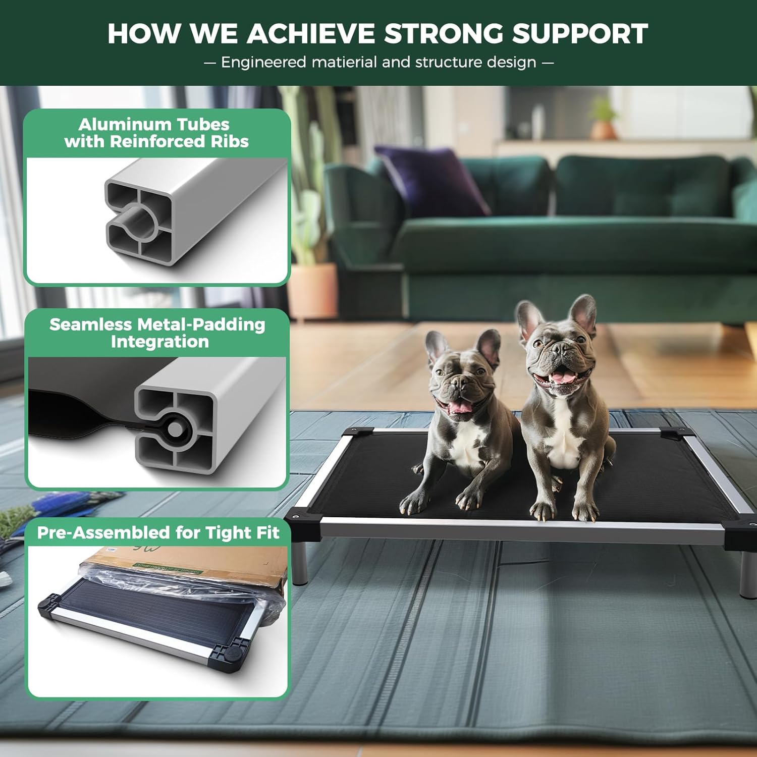 - Indestructible & Dog-Safe: Crafted with a premium aluminum alloy frame and chew-proof edges, this bed withstands aggressive chewers while keeping your pup’s gums safe and happy.