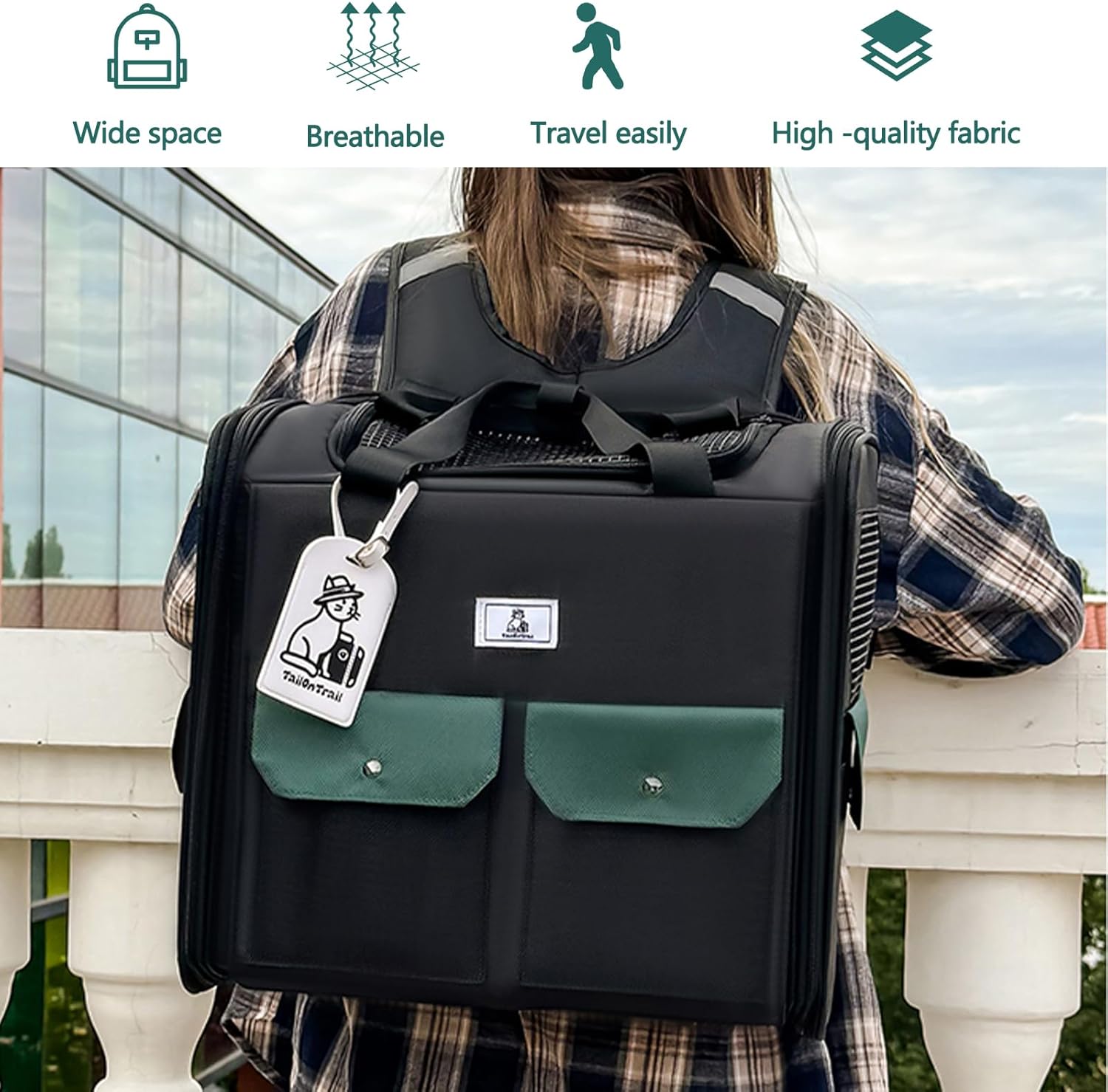 - Spacious and comfortable pet backpack: Our pet backpack measures 42*26*38cm (L x W x H), designed to provide you and your pet with maximum convenience and comfort when hiking, camping and traveling, or taking your pet, cat to the vet or walking the dog. It can easily accommodate large cats, small and medium dogs and other pets of different sizes, with a maximum weight limit of 7.5kg.