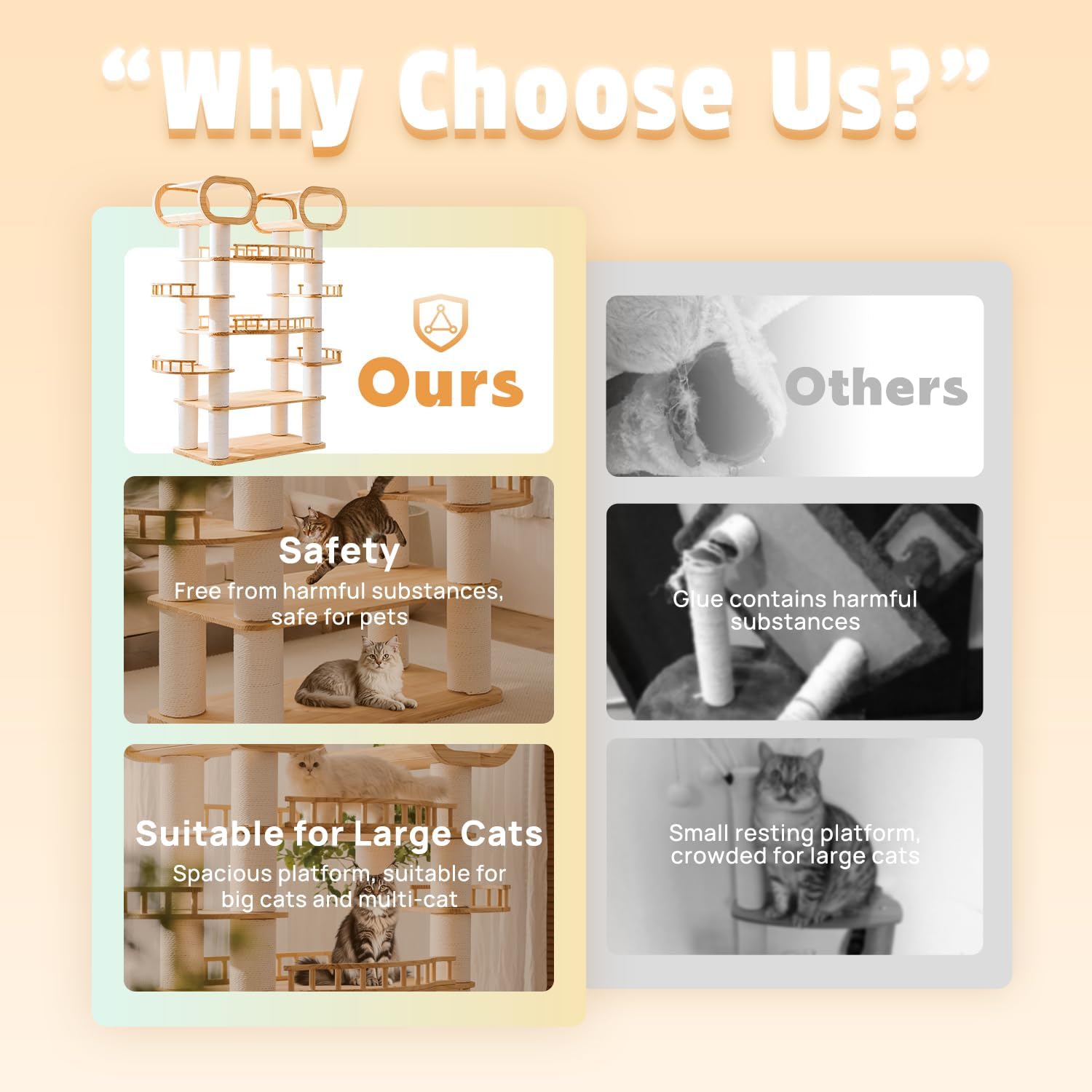 77'' Large Modern cat Tree, Multi-Level Tall Solid Cat Tower, Cat Furniture for Indoor Cats, Huge Cat Condo for Multi-Cat Families