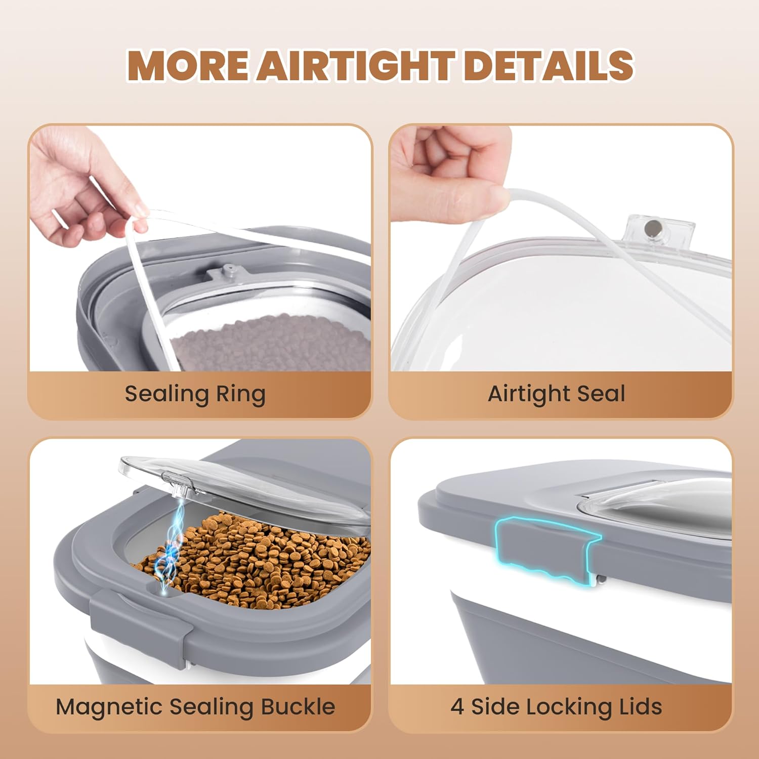 - SUPERIOR SEALING FOR FRESHNESS:The pet food container with double airtight seals and 4 side locking lids offers excellent sealing ensures your pet's food stays fresh longer, free from moisture