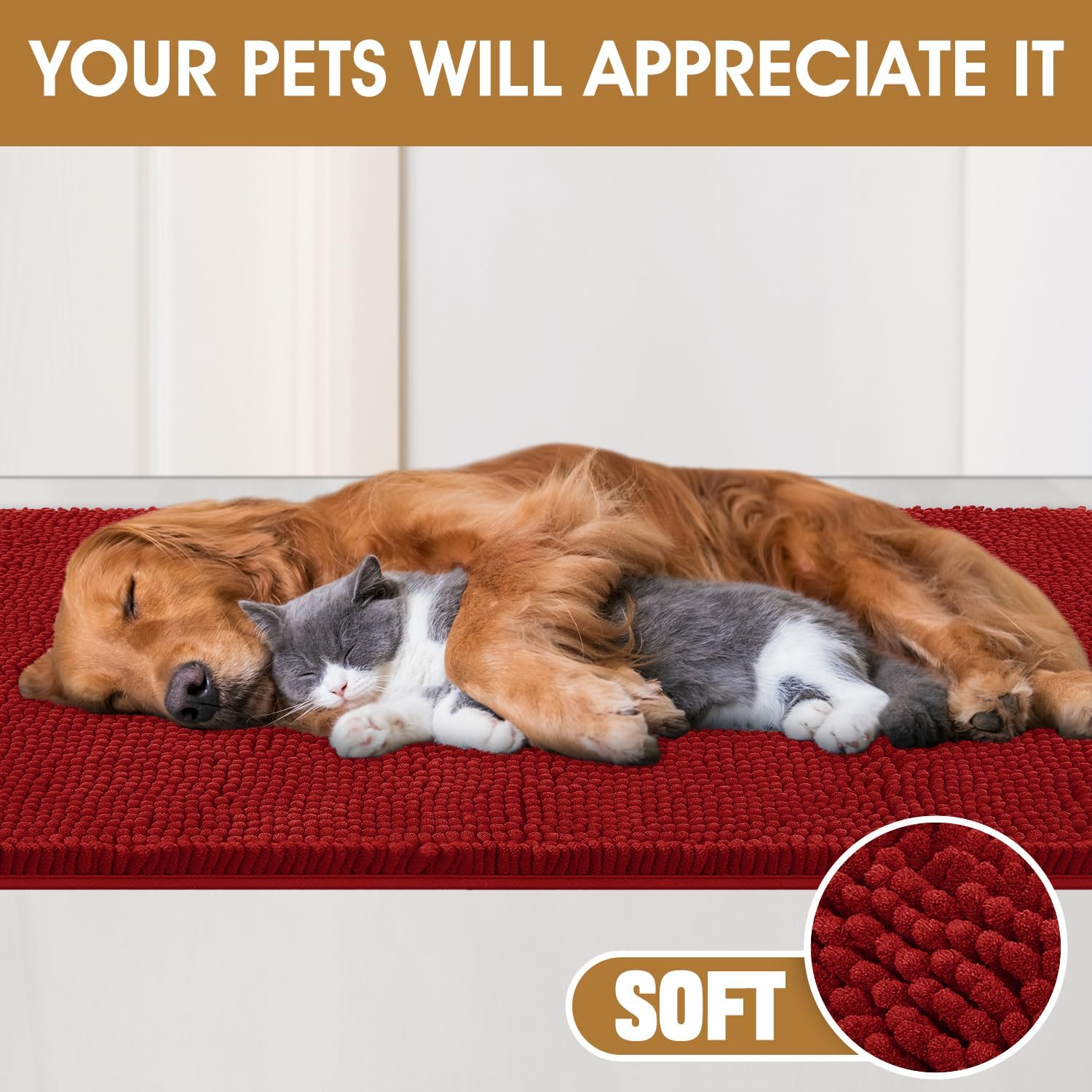 IM HOME Extra Large Dog Door Mats for Muddy Paws, Chenille Absorbent Dog Mats, Non Slip Heavy Mud Mat for Dogs, Soft Pet Mat for Entryway, Mud Paws, Inside Floor,71" x 25", Red