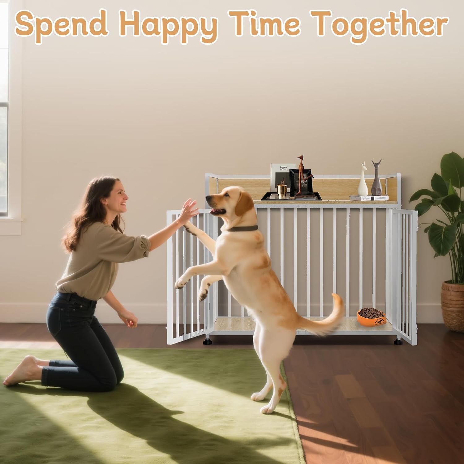 - Multifunctional Dog Crate Table - Simple and retro dog kennel furniture, suitable for various decoration styles. It is not only a dog cage for dogs, but also can be used as a side table, coffee table, or bedside table. The wide top can be used to place decorations or dog food, photo albums, small and medium-sized plants, magazines, etc