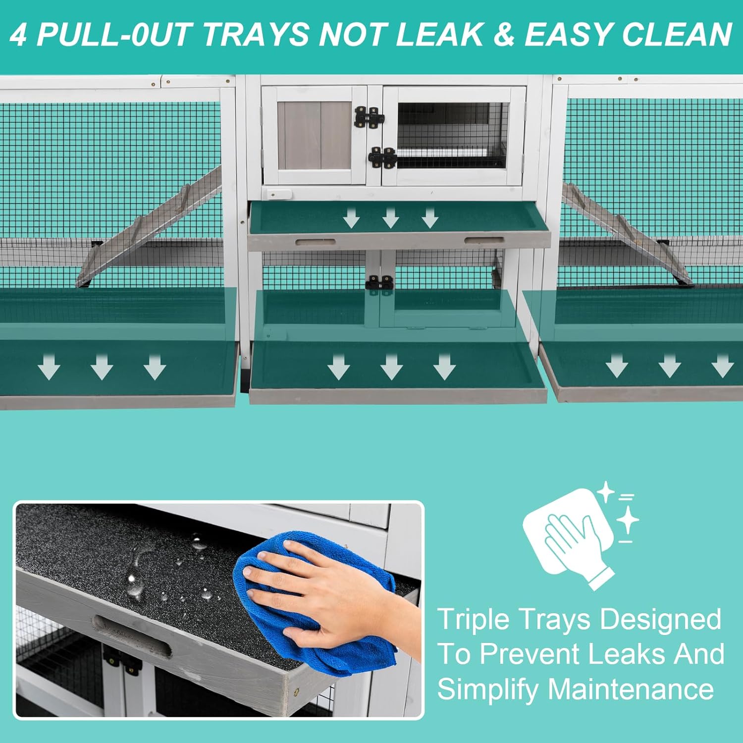 2-Tier Rabbit Hutch with Wheels, Indoor & Outdoor Small Animal Cage with Deep Pull-Out Tray, Anti-Chew Frame, Habitat for Bunny, Guinea Pig, Chinchilla (93" L x 19" W x 35" H)