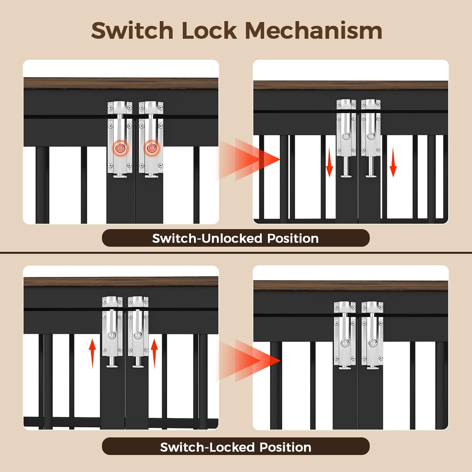 - Durable & Chew-Resistant Build: Constructed from thick steel tubes and premium wood, this crate withstands chewing and wear. Its solid frame provides long-term reliability and a secure resting spot for your dog.